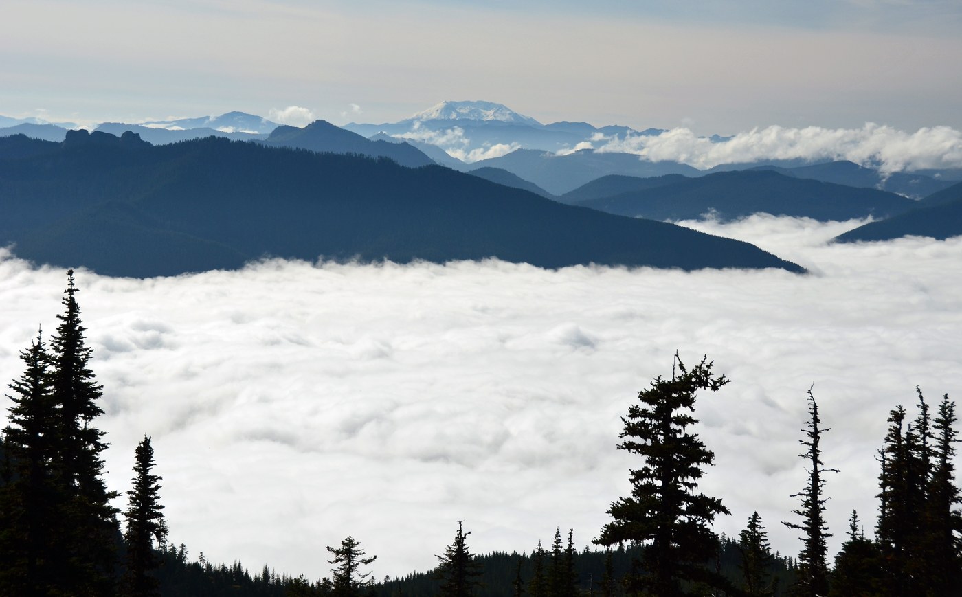 I really enjoyed this hike! It also helped that I went on a clear sunny day (got lucky on that!). I did not encounter any snow, but the trail was muddy as you make your way around Lake Christine. I felt the trail was easy to follow and was clearly visible. Trekking poles and good hiking boots would really help especially as you get closer to the top---it's a bit of a climb and rocky. The views were amazing though, so worth it! Mt. Rainier was in full view (no clouds), and I was able to see Mt. Adams and Mt. St. Helens in the distance.