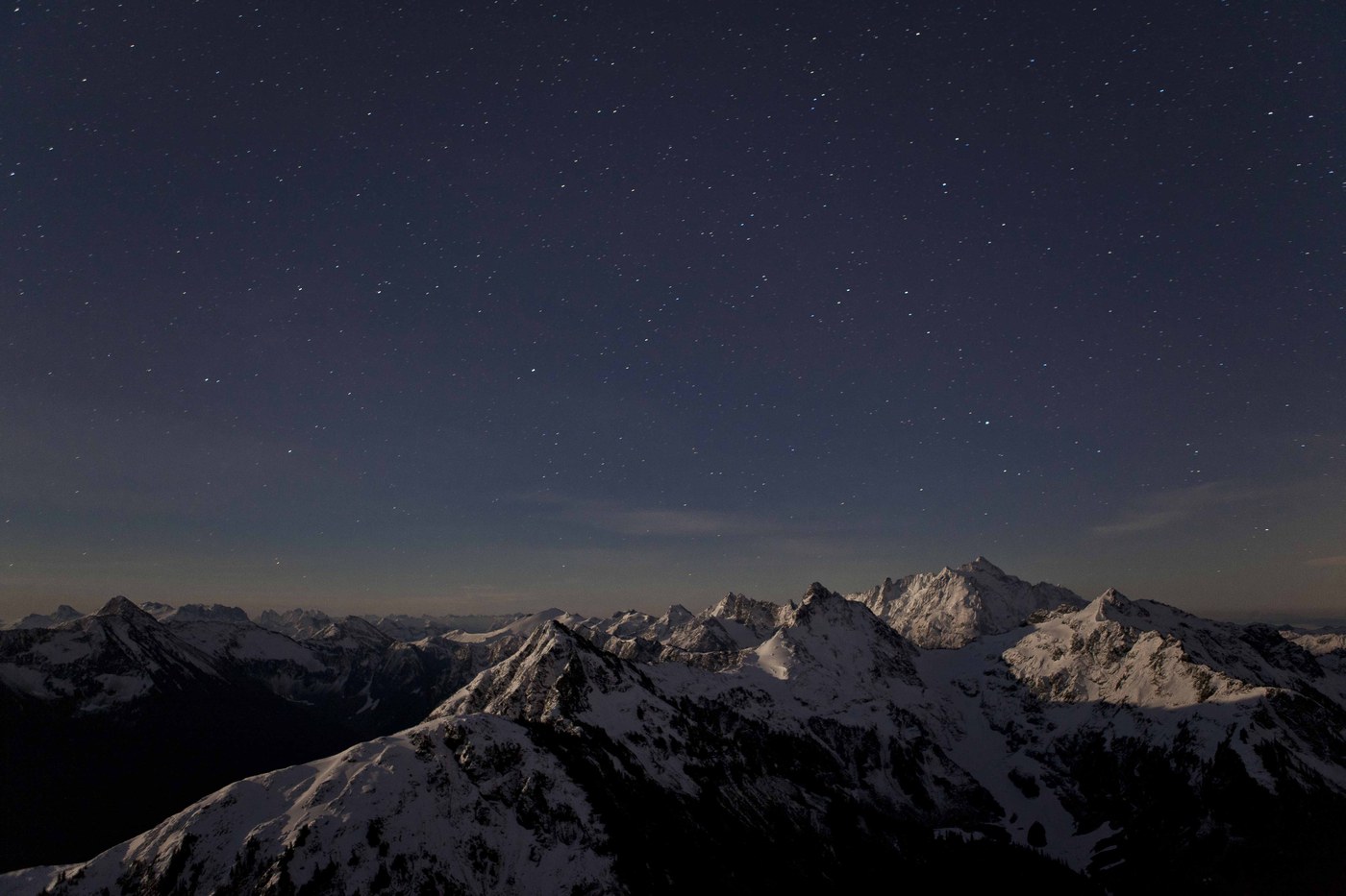 This was a time to be away from the windowed confines of the lookout, exposed to the perilous silence & freshness of the mountains, where the earth fell away at one’s feet and the sky balanced on the icy tips of Cascadian summits. We had many minutes to contemplate such things while gazing at the ragged silhouettes of Ruth Mtn, The Pickets, Whatcom Peak, and Redoubt against brilliant orange. Color drained skyward, replaced by fast-pink announcements of sunrise on the summits of Kulshan, Shuksan, Larrabee, and Tomyhoi. Molten ridgeline firs marked the distant point at which the sun would emerge. Then it happened, at 7:32; the first sharpened rays reached our eyes, thus born into a new day. Eventually, water finished, we trundled off with our pads and mugs, seeking strawberry flavor pop tarts and a simmering pot of coffee.