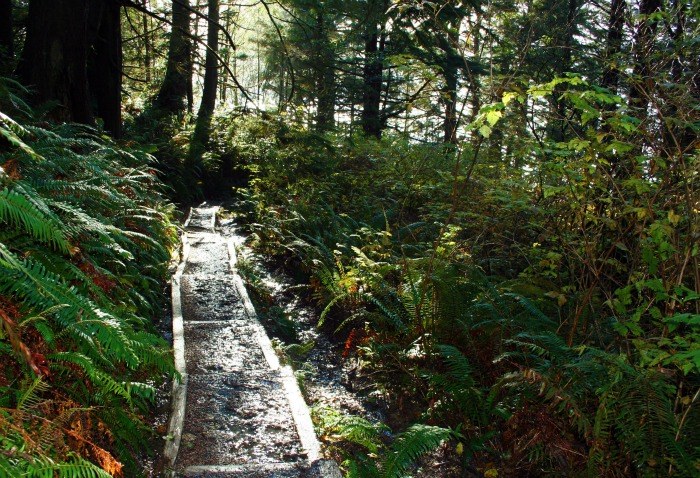 Much of this trail is lengths of boardwalk or constructed trail steps. Still, after the rainy days we'd just had, there was water on the trail in places. My three year old can't resist a puddle, so I made sure he had waterproof shoes on. There were only a few spots where we had to assist him down steps that were too big for him--otherwise I'd say this trail is entirely kid-friendly.