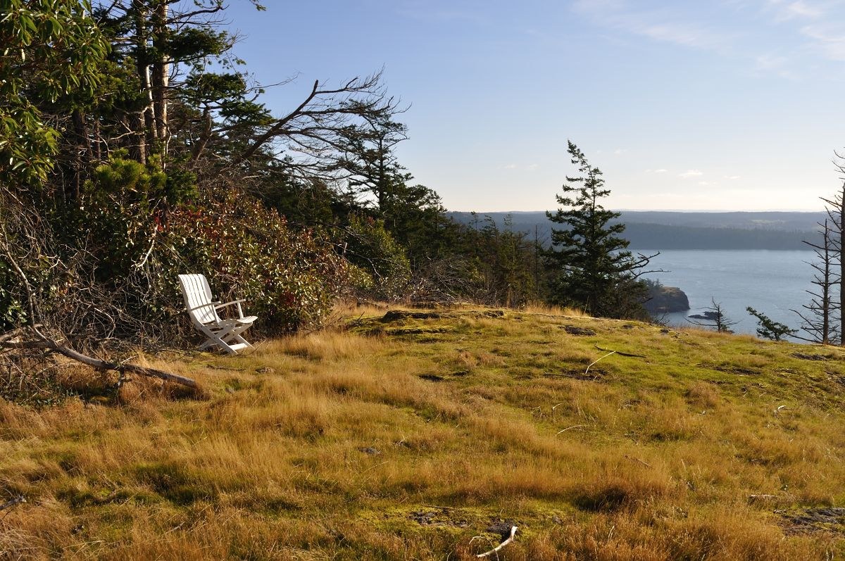 At Sares head, we rested a bit while enjoying the views and watching a Bald Eagle soar overhead. We hiked up the hill behind the bench at Sares head to see if the views were better -- no, not really, but we discovered someone had carried up 3 lawn chairs.
