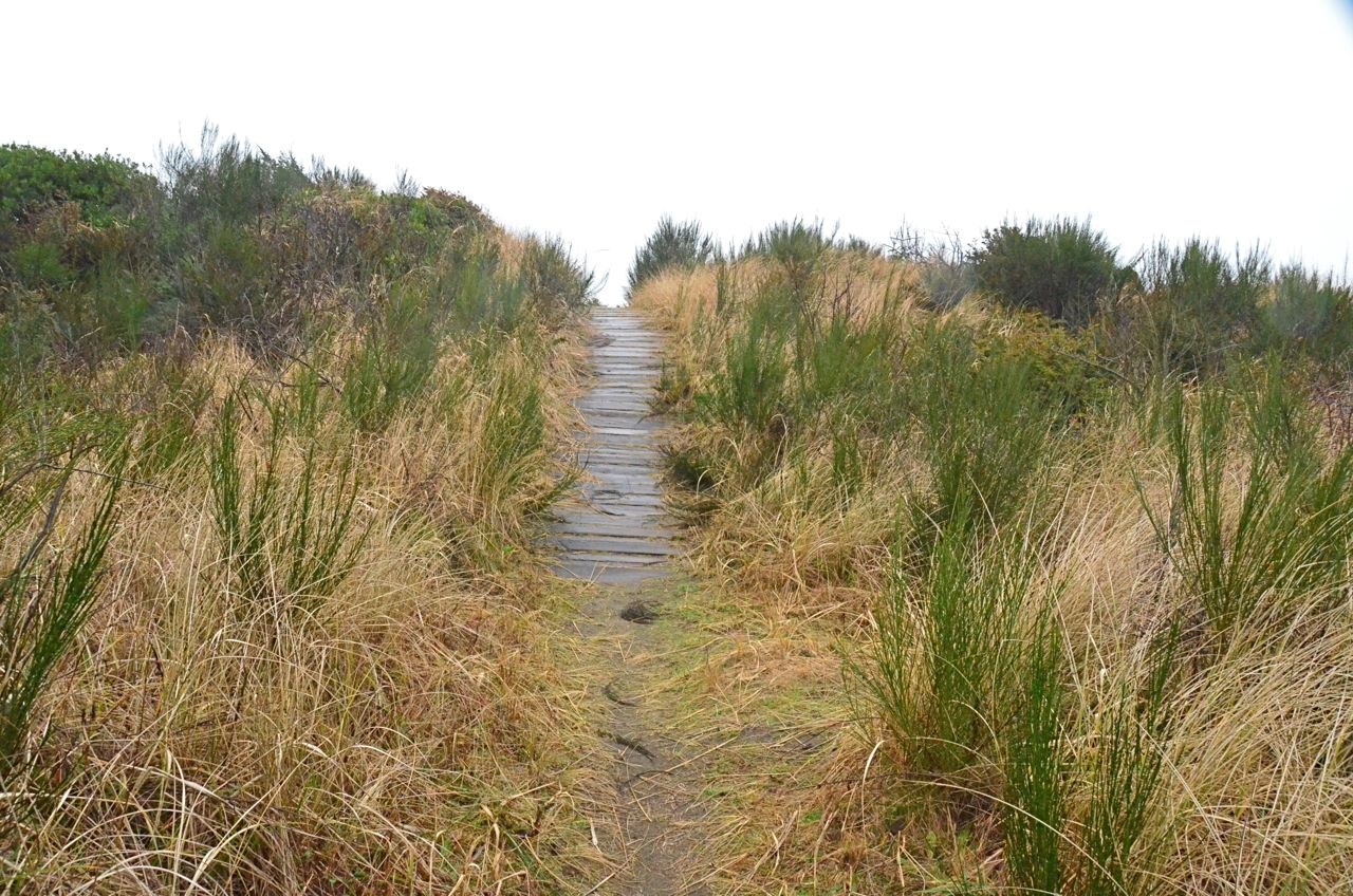 We read about this hike in Craig Romano's book, "Day Hiking Olympic Peninsula". To reach the TH go west from Hoquiam on SR 109 for 21 miles to Coplalis Beach turning left at the Green Lantern Tavern onto Benner Road. The park entrance is 0.2 miles. A Discovery Pass is required. Round trip is 4 miles, but we probably walked only 3 plus miles as the day was wet and windy. From the TH it is a .75 mile walk through grass covered dunes to the ocean. Where Conner Creek goes into the ocean one can usually access the ocean beach. However the trail appeared to have eroded away so we continued along the wide sometimes water-covered trail through the dunes for about another 1/2 mile before the trail turned to the beach. There were hundreds of shore birds along the edge of the ocean. The rain was blowing side ways so we were at the beach a very short time so never reached the Copalis River. The vegetation on the dunes was beautiful!