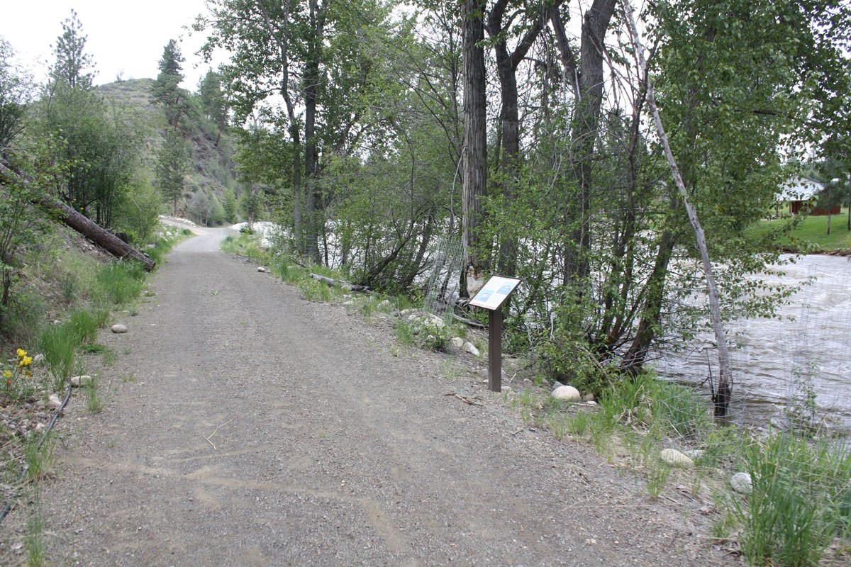 A bridge on the north west end of Winthrop's boardwalk provides access to the trail. A nice walk through a pine forest along a scenic river.