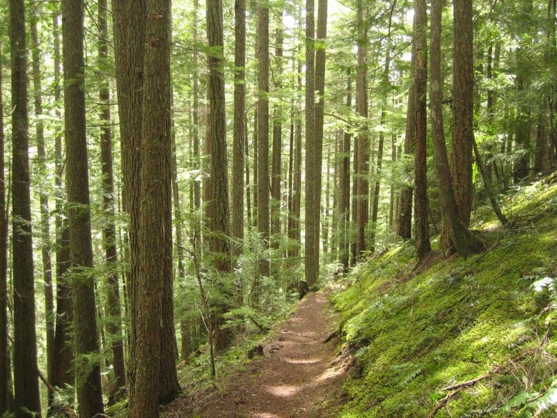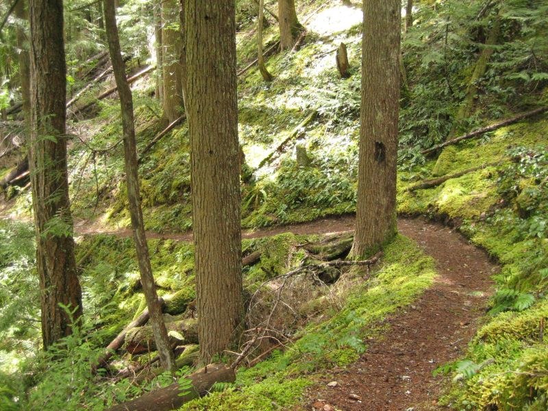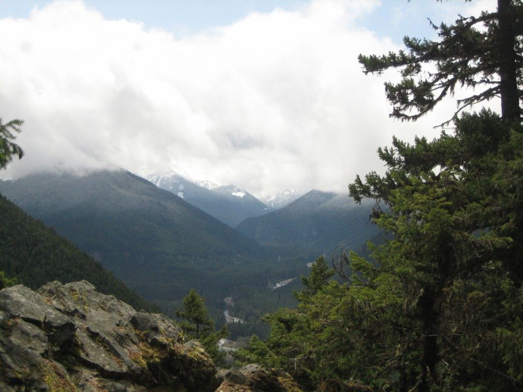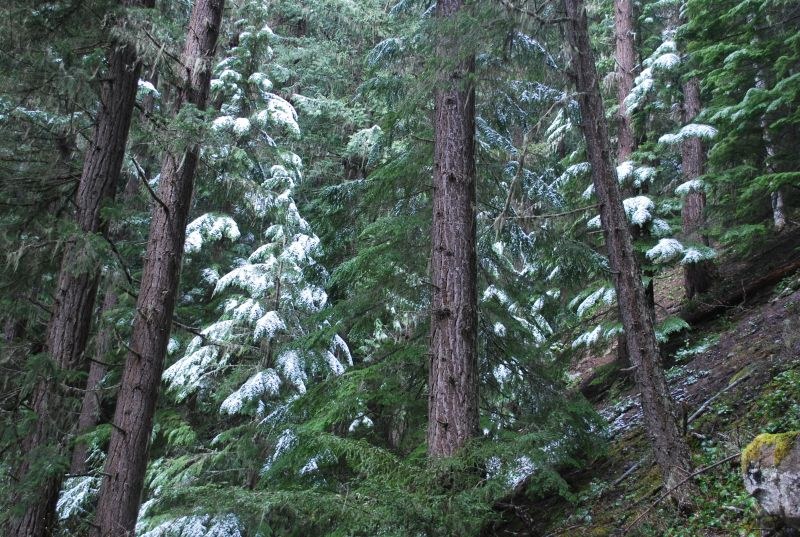 We parked at the Buck Creek lot and walked across 410 and went left about 200 yards to the trail. The trail is in great shape. It's a gentle grade on soft ground with very few rocks or roots making it a nice walk. There was no snow on the trail and the snow on the branches on the upper part was melting fast. Clouds blocked the view of Mount Rainier but it was still pretty.