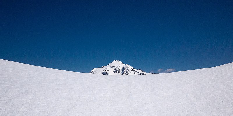 Woke up at 4 AM, left the camp at 4:45 and made the summit at 8:30 (after a slightly off turn on Cool Glacier which resulted in unplanned bagging of Disappointment Peak). We skinned to 9,600 ft then switched to boot crampons. Both summits were in cold and wet condition and in a near zero visibility, which was the real disappointment. We saw remnants of a skin track above 9,500 ft, it looked few days old.