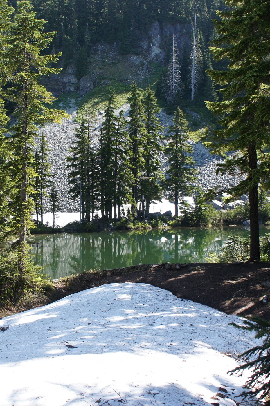 It was a beautiful day for a hike and there were very few people. The hike to the Margaret Lake cutoff was steep but pleasant. Near the top there were a few patches of snow and many blow downs but we were able to navigate around all of them.