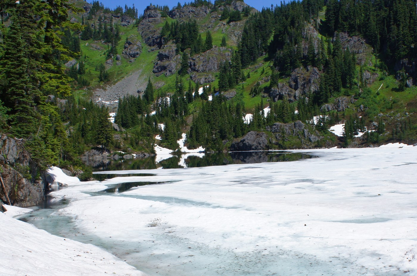 The hike up to Lake Lillian was steep but the view was well worth it. The Lake is still mostly covered in snow.