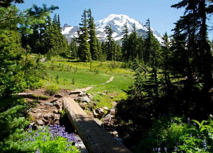 The trail is in good condition and the signage easy to spot. We didn't encounter any issues on this hike. Another hiker, that we passed, told us about the Eagle Cliff viewpoint and I'm glad she did. The view of Mt Rainier and the surrounding area is gorgeous! Spray Falls was a nice reprieve from the heat (by this time is was noon-ish). The mist from the falls felt so nice and refreshing! We continued on to the meadow. Just before reaching the clearing are some switchbacks. They aren't too steep, compared to some of the other hikes I've been on, but it seemed to go on forever. I think I was just too excited to see the meadow full of wildflowers.