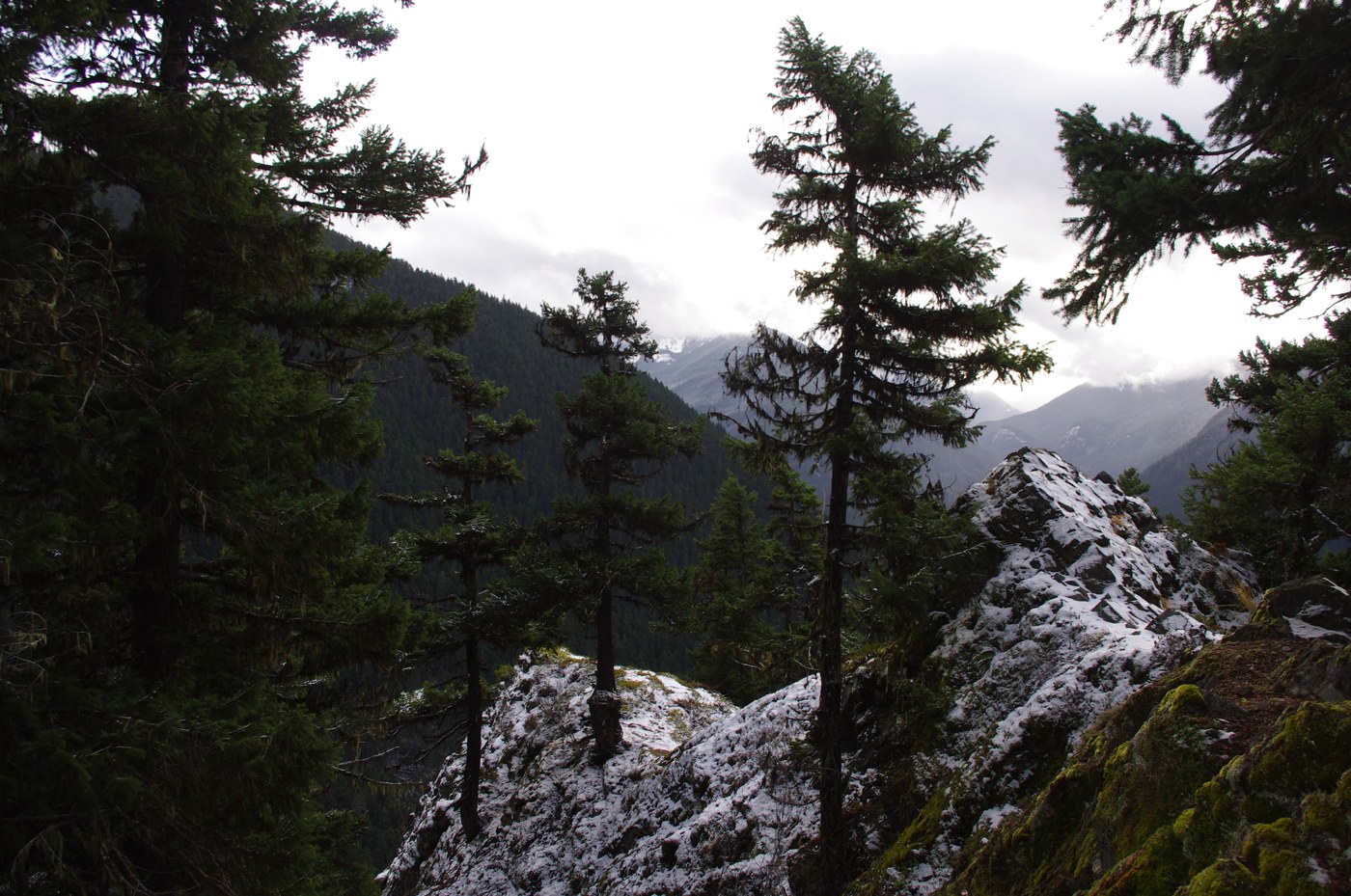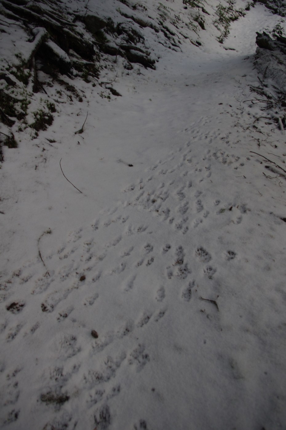 Unfortunately, after about 2 miles from the viewpoint, I decided to turn around and start my descent back to the trailhead. At 4800’, the weather was starting to change into conditions for snow. There was also a few 45 degree snow slopes across the trail that looked unstable due to recent rain and refreezing. Even the animals didn't make their tracks in this area! Better to be safe than sorry, right?