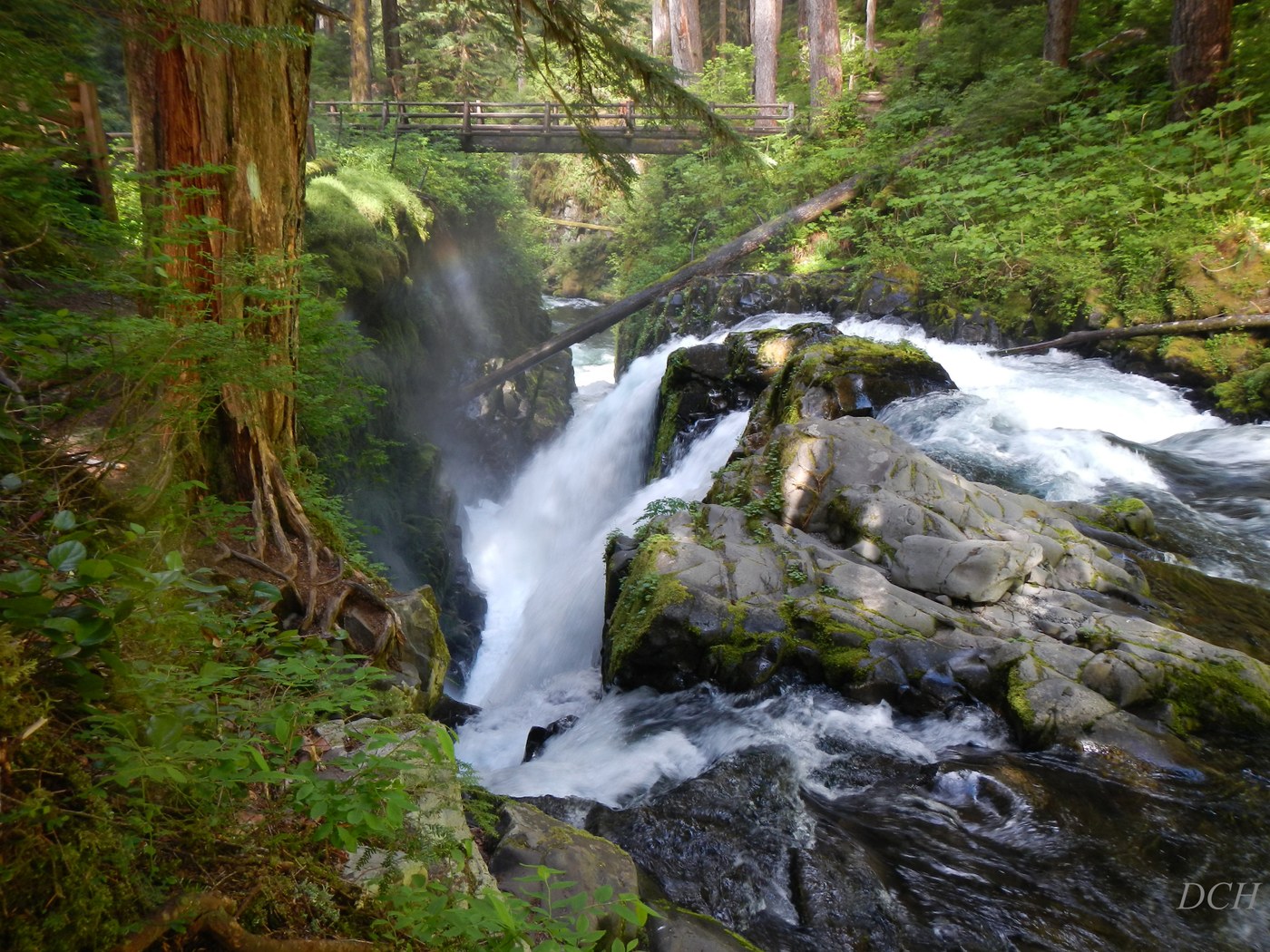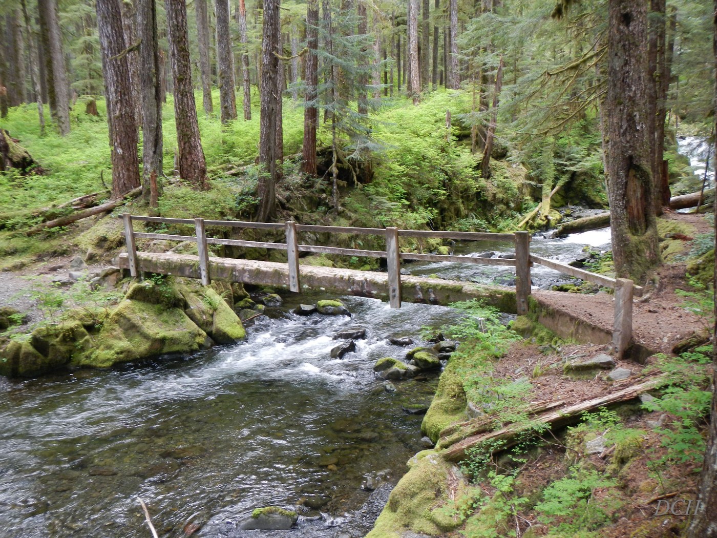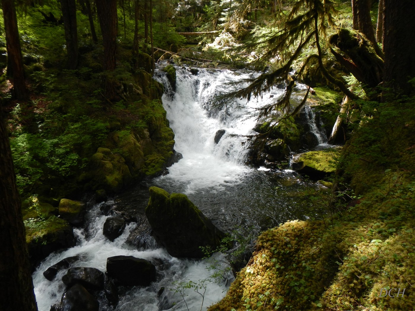 The loop trail is in good shape. Lots of bunchberry flowers to be seen throughout the hike. The river is running strong right now, and there are small fry trout along the edges of the river. The falls as always are a great feature on this hike and they don't disappoint.