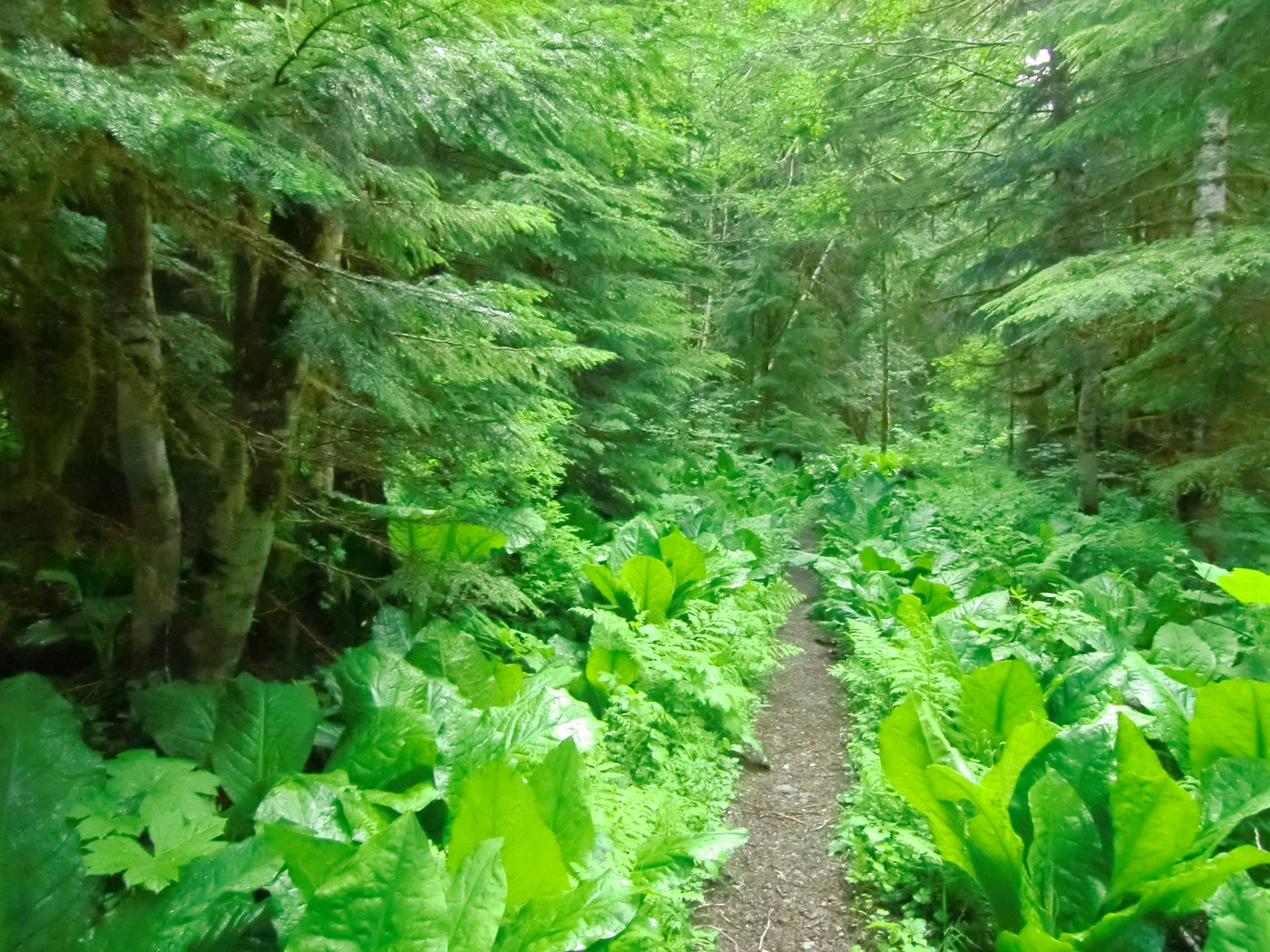 Road 49 to the North Fork of the Sauk was in good shape with few potholes, they did a great job on the road. Arrived at the trailhead at 10:15am and was the only one there. A few big blowdowns at the start of the trail, but was able to get around them ok. Just scouting today and only went in as far as the first creek crossing. It was running high and had the little dog with me, so turned around there. Love the old growth in the forest on this hike. The trail is brushy in spots and needs to be cleared. On the way back 2 deer were running full speed on the trail and ran into us. The little Yorkie stood her ground barking and growling. One deer ran to the left and the other to the right, about gave me a heart attack. I think the little 6 pound Yorkie looks in the mirror and sees a Bengal tiger. Later in the summer I'm going to do a one day 26 mile trek up Pilot Ridge and come back down the North Fork Sauk from the Pacific Crest. Doing my conditioning now. Stopped and checked out Sauk Falls on the way back. The trail is not marked, but its a mile from Mountain Loop Highway. Trail was in good shape, but can be slippery. First time on the trail to Sauk Falls and there are some great views. Great day to be out, didn't run into another soul.