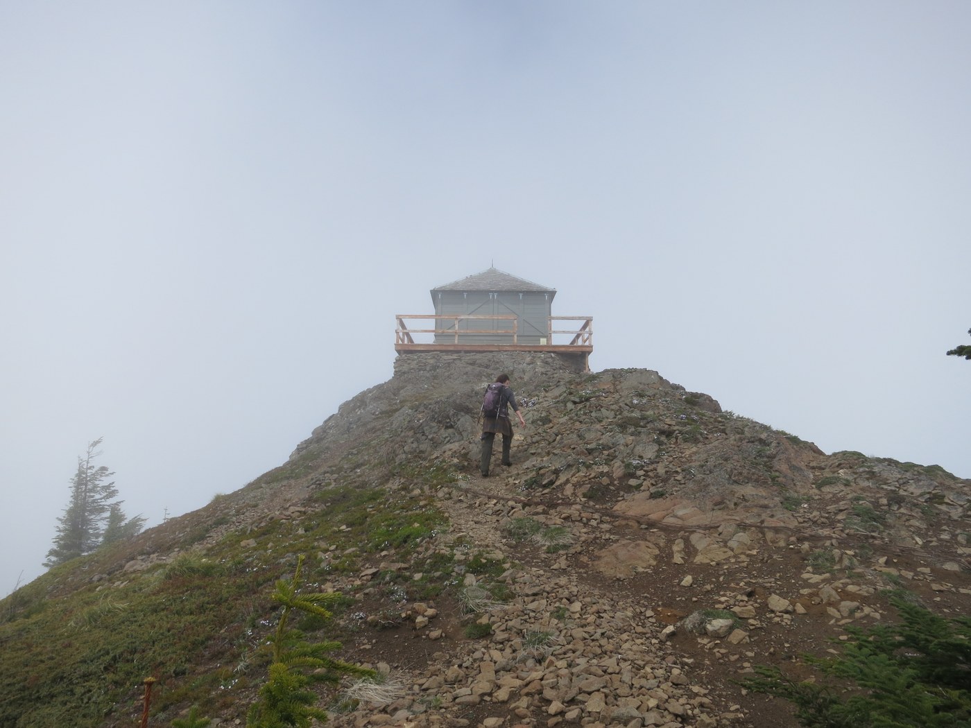 My boyfriend and I kicked off the season by taking our first trek up to Kelly Butte. The trail was in great condition, minus the "Kelly Butte" sign pointing to the start of the switchbacks being knocked off the post. We temporarily attached it but it will without a doubt fall off again. There was quite a bit of snow to walk through as you near the lookout, but nothing that requires any extra equipment, just make sure your boots are waterproof! The lookout was great, minus the foggy weather (we didn't really get a view today). It was obvious that this hike offers incredible views on our way down when the fog started to burn off. Looking forward to doing this hike again on a clear day!