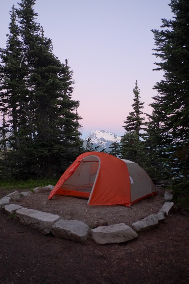 Devil's Junction boat camp apparently has 3 sites. One of them is right on the lake with a nice large ad level tent pad, a dock, a nice beach, a bear box, and an outhouse. The other one is down a trail with numerous blowdowns. The tent spot is on a rocky bluff overlooking the water. It's almost big enough to stake a 3 person tent. I made it work by substituting rocks for stakes in 3 places. The rocks retain a lot of heat, so we had to stay up for a while and wait for the tent to cool down before we could go to sleep. I'd never slept with the fly off before, and will say that it was pretty awesome to wake up in the middle of the night and see the big dipper.