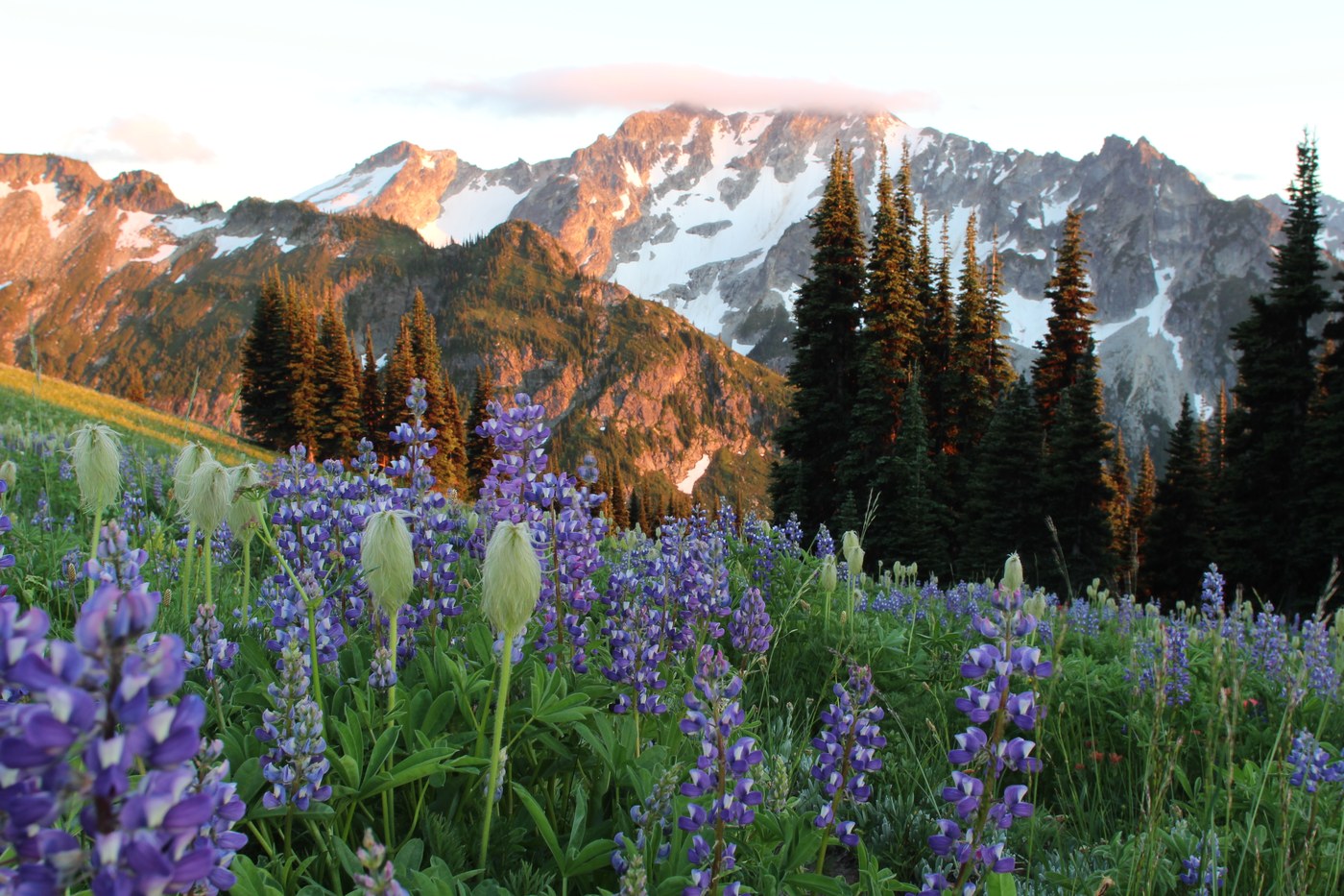After getting to top of High Pass (and off snow) I was relieved to see trail! My anxiety reduced, I really started to take in the views and reflect on this epic long day of hiking. Camping above Buck Creek Pass near a water source I had the wildflowers and views to myself. Glacier Peak was looking incredible.