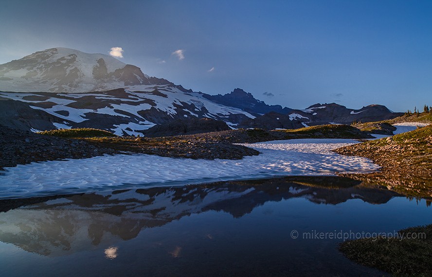 So my goal was to get to the end of the Paradise Glacier trail and work my way back down as the light got better after 7pm-ish. I found several extremely photogenic tarns up top and captured those. Also several fields of lupine, paintbrush and other wonderful flowers. I made it back to the trailhead about 9pm.