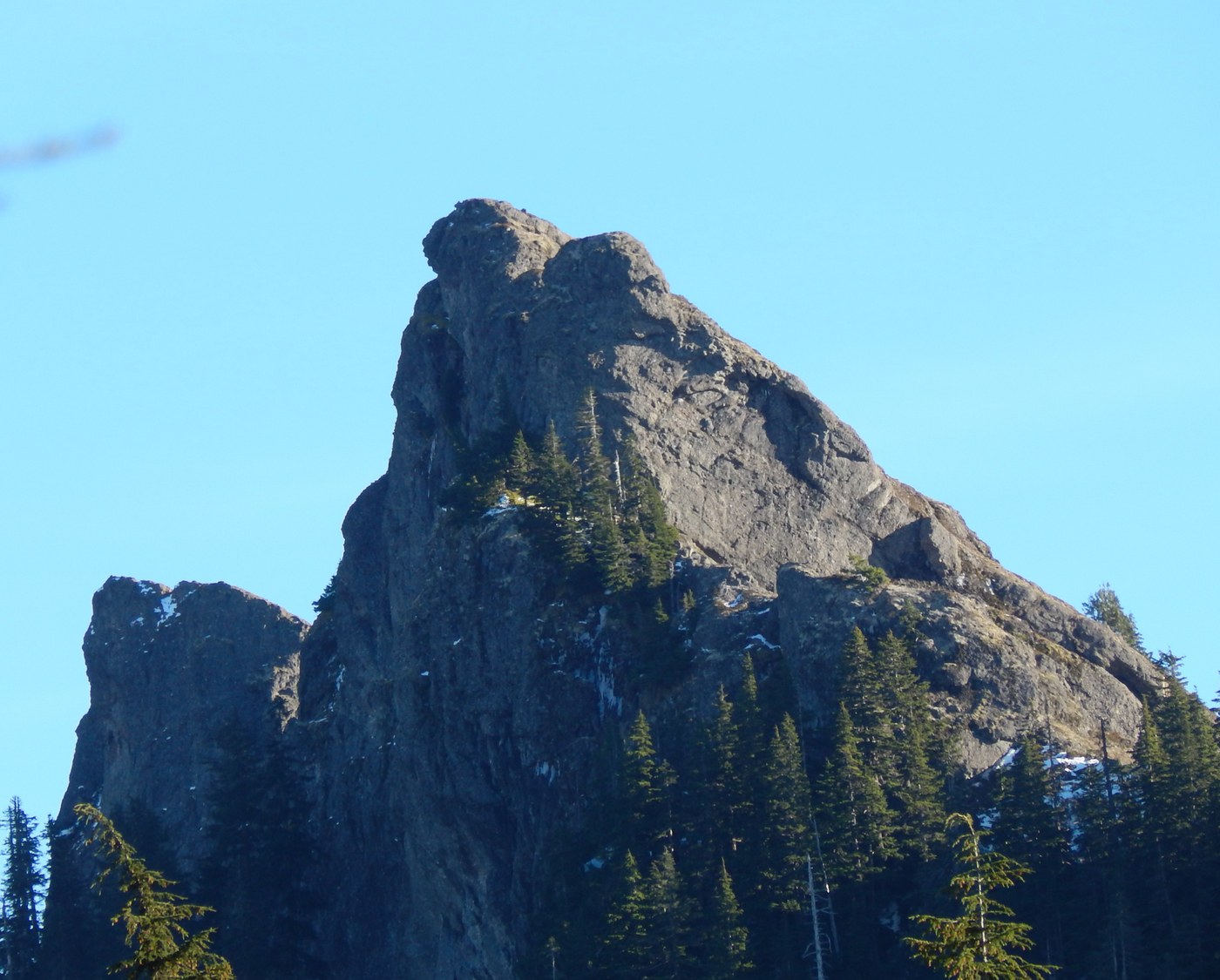 From this point you move in and out of trees. To the south you can see Griffin Mountain. And behind it, Mount St. Helens. You can even see Mount Adams peeking from behind some smaller mountains. This section of trail did have a little snow on it. Not much and it was scattered. I only got about a mile further before I turned around so I could make it back down before the sun set. But another mile or so, you could make it to one of three lakes, Pothole, Bertha May and Granite lakes.