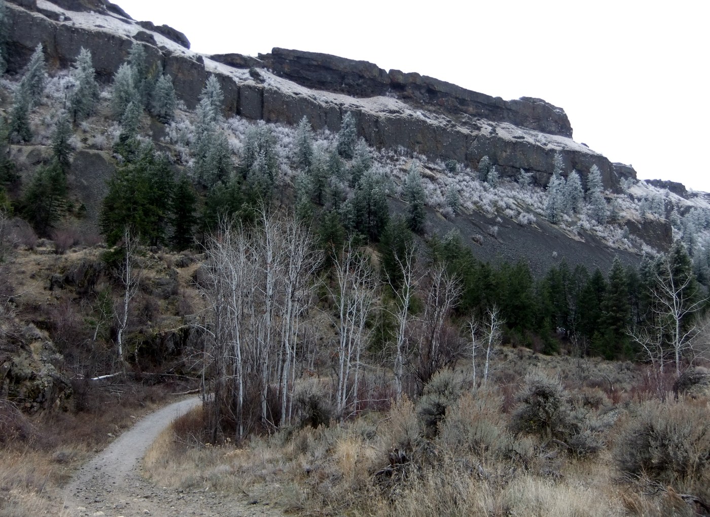 Great day to hike at the Northrup Canyon. The weather was cooler and the trail was clear with the exception of a few icy patches. The ice fog made everything so beautiful and worth the trip.