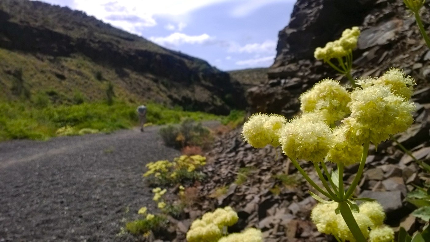 We started hiking around 2, and did the whole hike by 5. It was hot and dry at the beginning, and on the way back, we got some cloud cover. There were wildflowers everywhere, and we stopped to take lots of pictures. It's nice and flat, not strenuous at all. Beautiful hike!