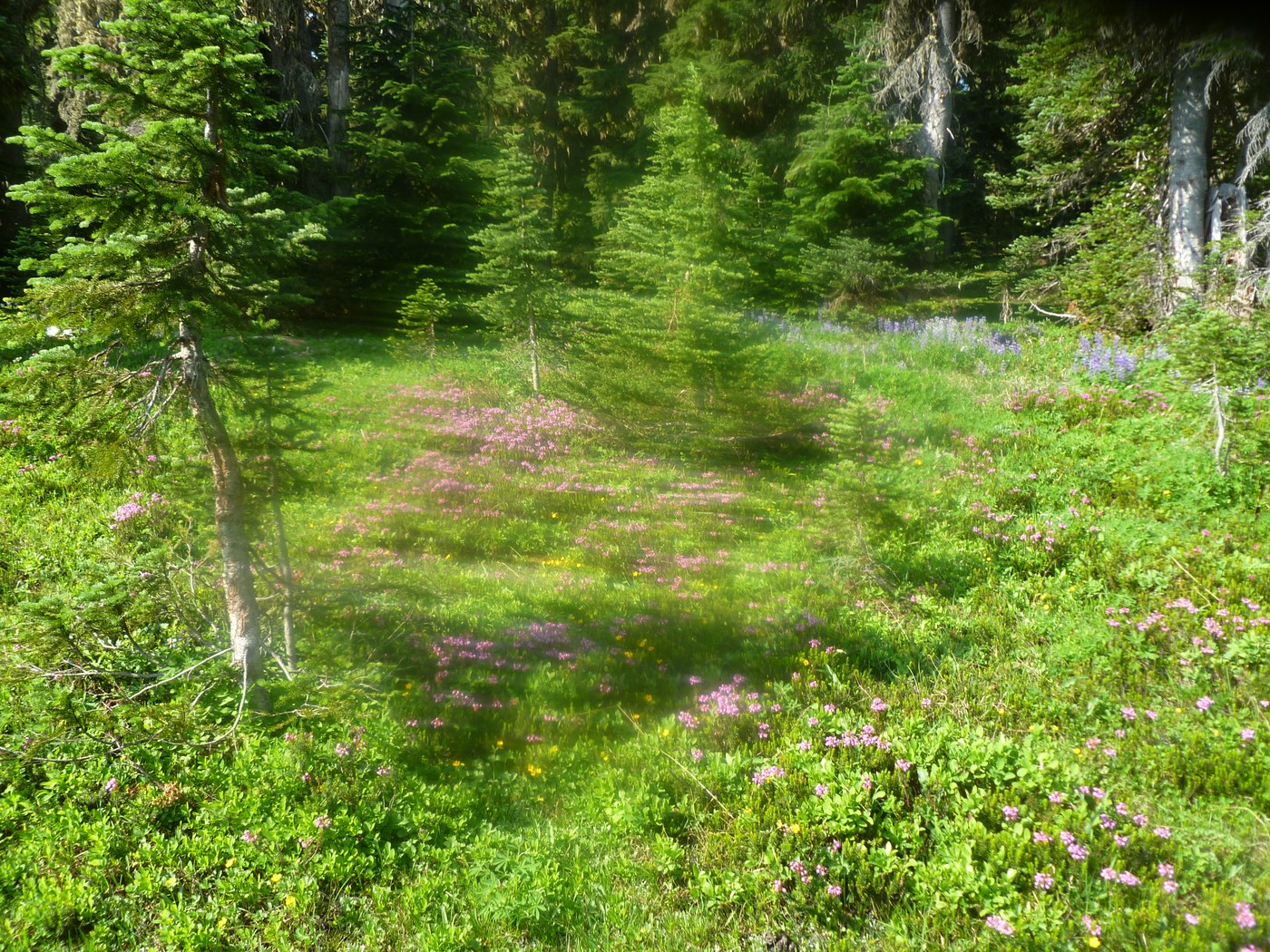 There was 7 guys from our Church And took a hike up to Deer Lake And Sand lake the bugs were badb but the flowers were nice and blooming, There was cowboys heading up to long john lake on their horses, and leading them with other mules and there camping gear, there was a pacific crest work crew also working on the trail