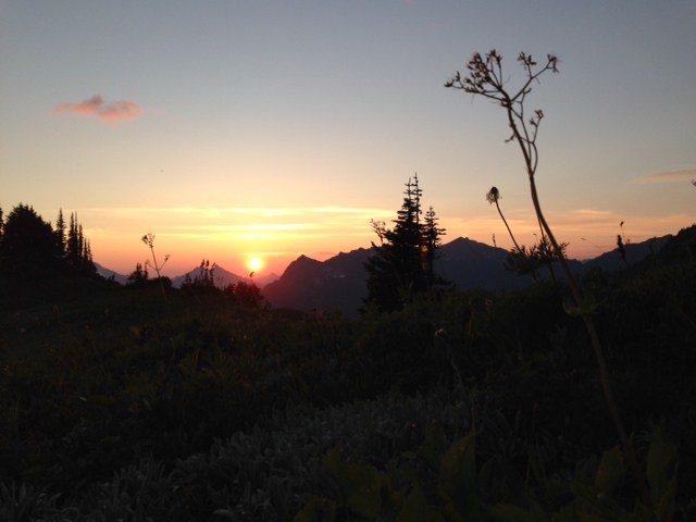 I arrived at White Pass to stare in awe at the valley below and to plan future loop trips south. I then headed up the ridge to the summit of White Mountain where Glacier Peak burst into view. Incredible! And so I continued along the ridge to Red Pass as I enjoyed the views in all directions. I camped near Red Pass where I enjoyed a spectacular sunset.