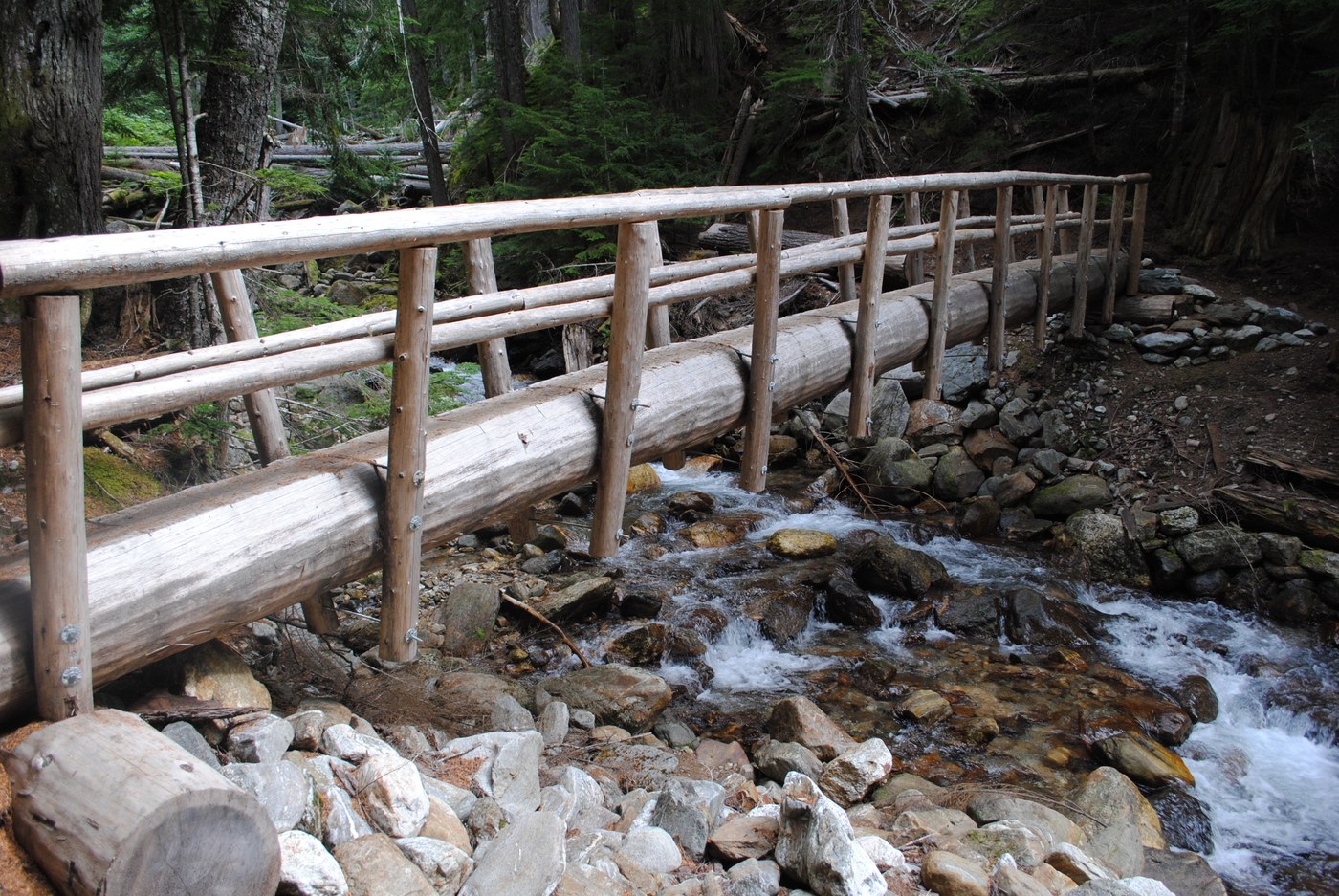 North Fork Sauk Falls: The trail is in good shape with a series of switchbacks and stairs leading down to the falls. The rocks at the bottom can be slick.