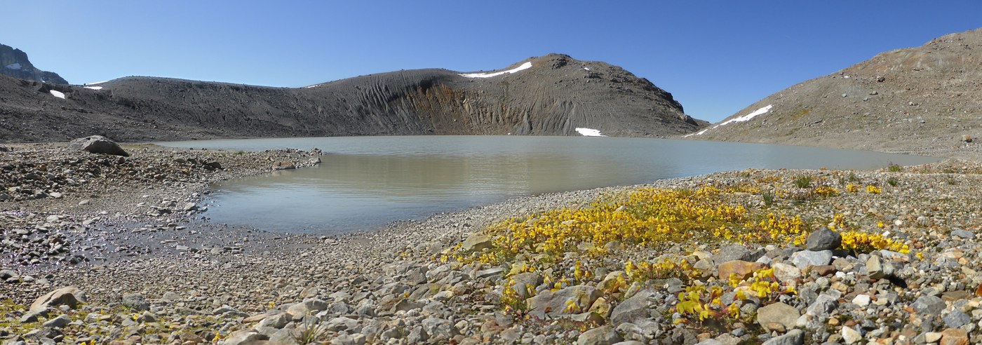 From the top of this second ridge you see the first high alpine basin, with mostly just tarns, rocks, and snow. On the left there is a nice view on the White Chuck Cinder Cone and the Red Pass.