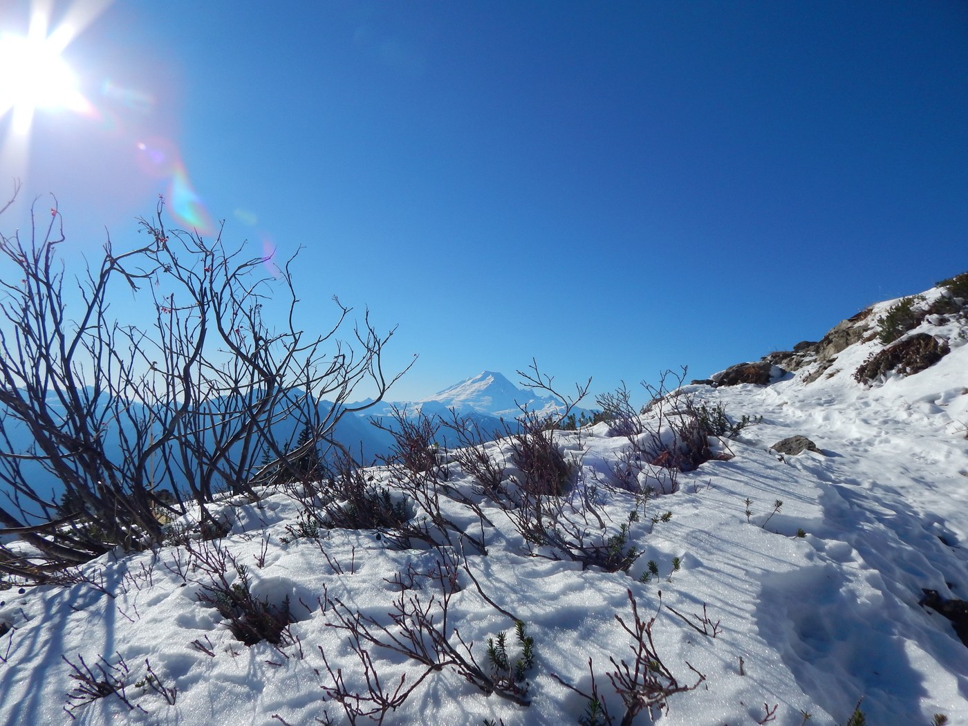 The goddess called and I listened! Pure solitude at YAB, say what! The trail was snow covered for the entire way with increasing depth to about 8 inches up top. Absolutely a perfect late season day with 20 degrees at trail head, crystal clear skies and no cars in sight. Ascending wasn't too tricky with only occasional ice obstacles. The trail is easily followed with snow up top providing excellent traction. Spent about 15 minutes sipping hot tea before the chill and wind encouraged some movement. The descent is a little more treacherous with a few wild slides on the old behind.... consider some light traction as I only decided on trekking poles for stability.