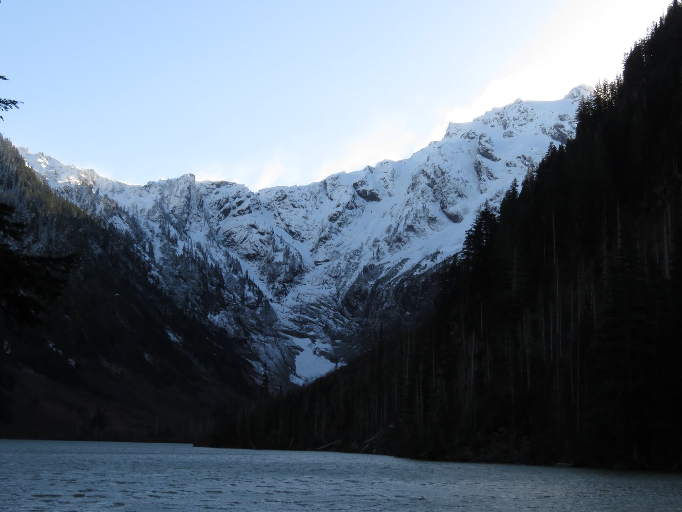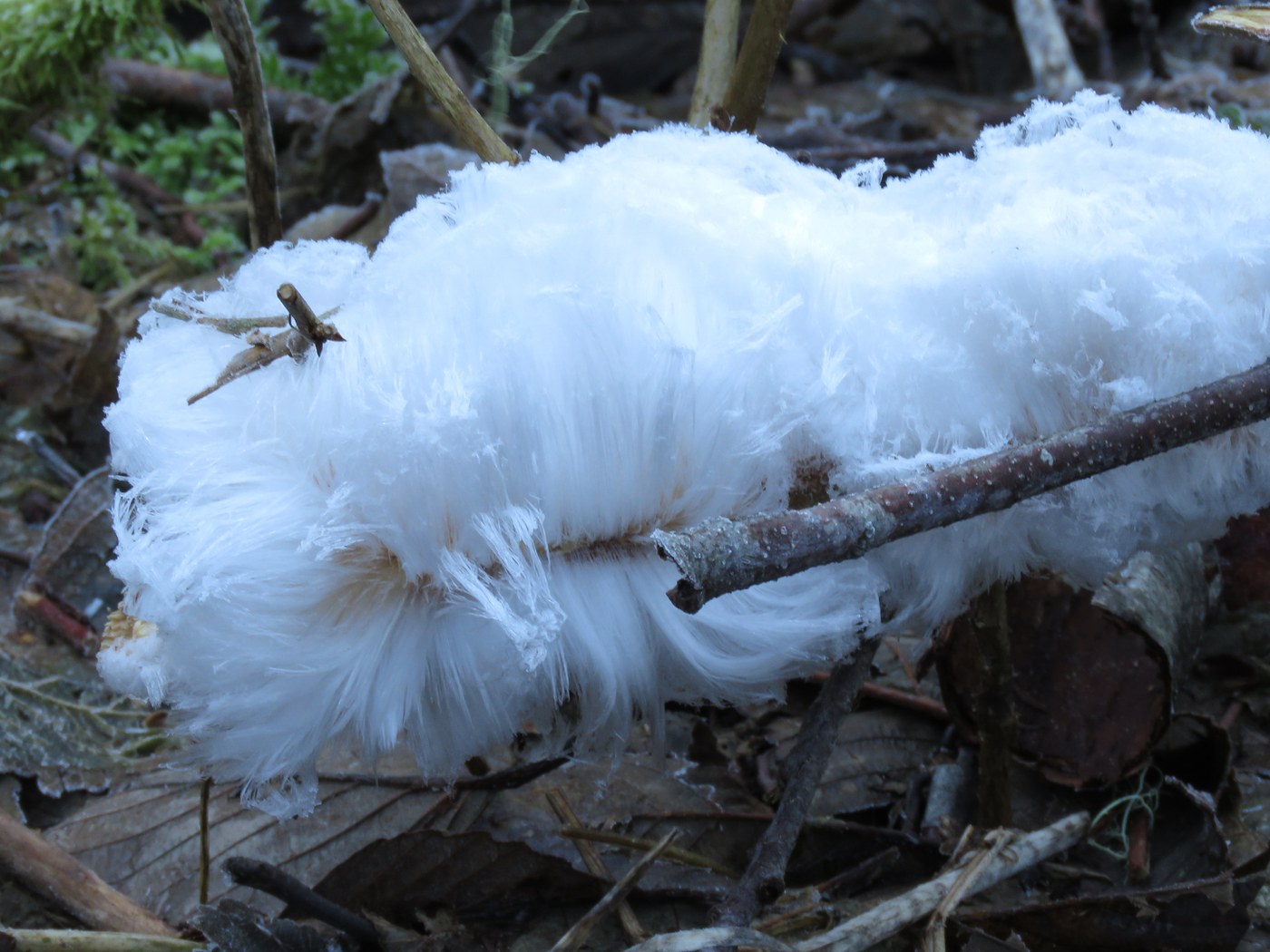 I've never seen so much hair ice in my life, the road leading to TH and the first few miles of upper trail covered in hair ice formations. This was very exciting for me, i've seen a few pieces on dead wood a couple times, but never this much! After that excitement we took lower trail up, few trees down and branches from recent storms. We saw 2 herds of goats today! We were the only hikers. The wind was fierce at the lake, we didn't stay long. More goats spotted at the lake in usual spot i see them. Great day with good friend.