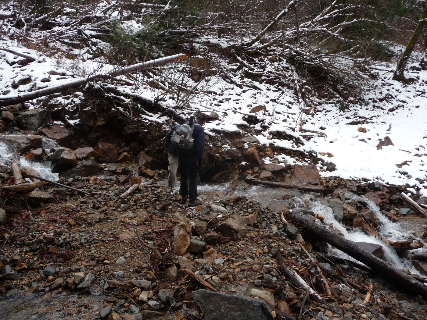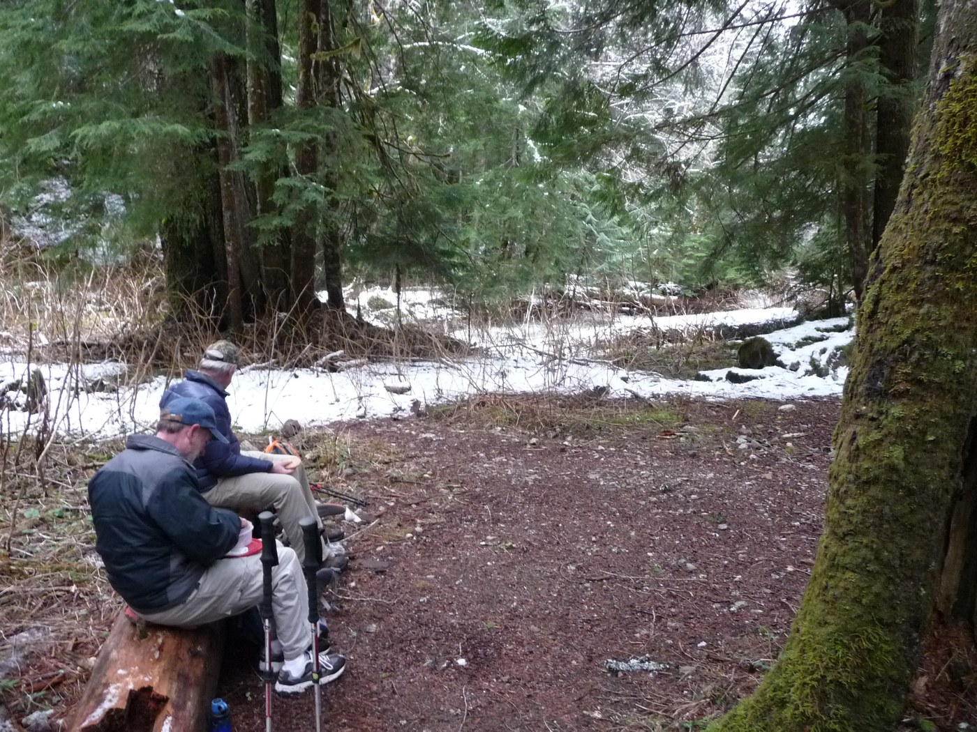 We picked up 650' of elevation there and back. This is a nice easy stroll along the southern flank of Red Mountain and would make a fine long hike or backpack in the summer with the cool of the high canopy and the rushing river. We must go back after the melt out next year.