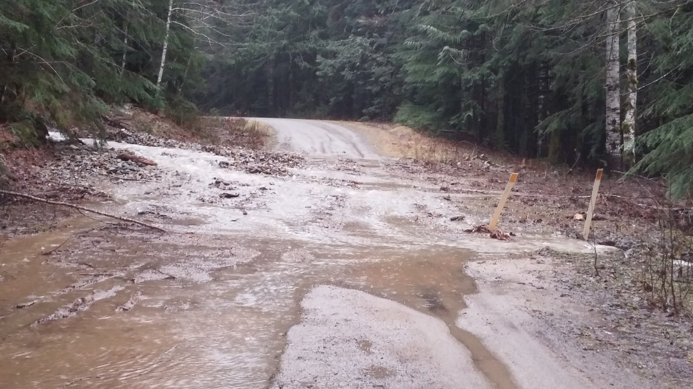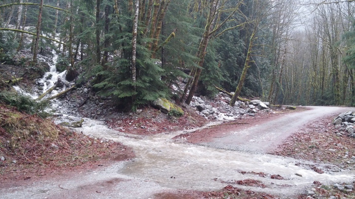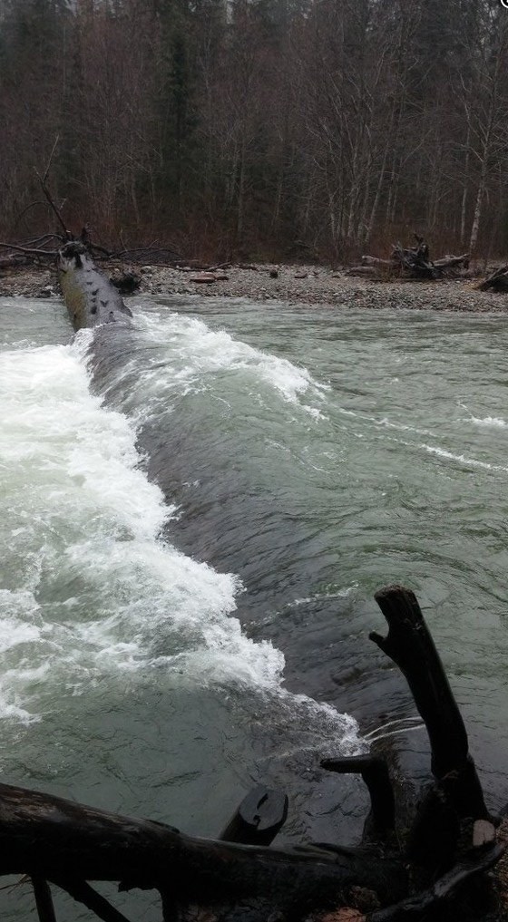 After getting denied at the North Fork of the Sauk, I headed further up the Mtn Loop towards Barlow Pass, where I checked out the wagon road to Monte Cristo. The log that normally allows you to cross the South Fork of the Sauk (on your way to Monte Cristo) is partially submerged, and my guess is that it will be fully submerged by the end of today.