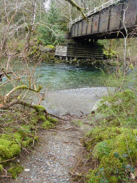 The hike to Darrington is a good one, following what I believe was once an old RR line. There are ample spots to view the Stillaguamish River, with some limited river access. There are also a few creek crossings, bridged, about a mile in from the trail head. One does offer creek access, and I spent a little time there. I never could find the name of the creek. There are also many views of Whitehorse Mountain along route, making this hike a nice one. When you reach the amphitheater area, stay to the right on the line of trees, bleacher area. it is much easier to pick up the trail again on the other side. I did not go all the way to Darrington, passing the lumber yard/area, and turning back at this point, about a half mile short of Darrington.