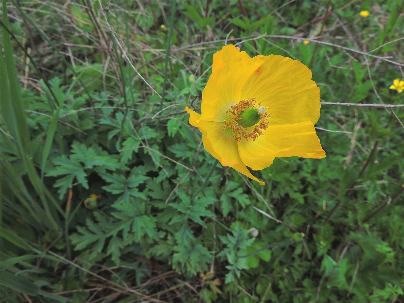 This is Welsh Poppy (Meconopsis cambrica) and not Iceland poppy (Papaver croceum). It is typical for Welsh Poppy to naturalize weedily in the Puget Lowland whereas Iceland poppy may not be known as a wild plant here at all. Otherwise the leaves and growth habits of the two plants are different.