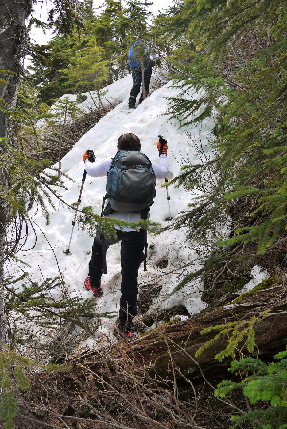 The trail is okay until the last push to the top. It was covered by snow and I would recommend hiking poles and traction devices. Generally an easy hike and the view on the top was fabulous!