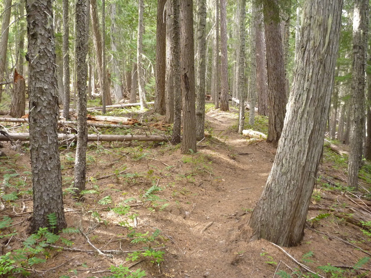 Reached the Jack Pine trailhead at 9am. The paved section of Icicle Creek road had been patched and was great. The gravel section on the other hand is increasingly washboarded and potholed. Hiked 8 miles or so in, up to the junction with the Van Epps trail. The trail was in good condition: There were 10-20 blowdowns, but only one or two required some effort to get over/around, and only one of the many small stream crossings required some balancing in order to avoid wet feet. The fords for connecting to the Meadow Creek and Van Epps Trails on the other hand looked challenging: Jack Creek was at least knee deep and fast-flowing. Encountered only two parties on the trail, even though the campgrounds in the area were all full this weekend, and the weather decent. Passed many nice (and all unoccupied) campsites along the river.