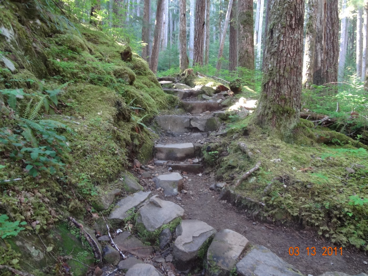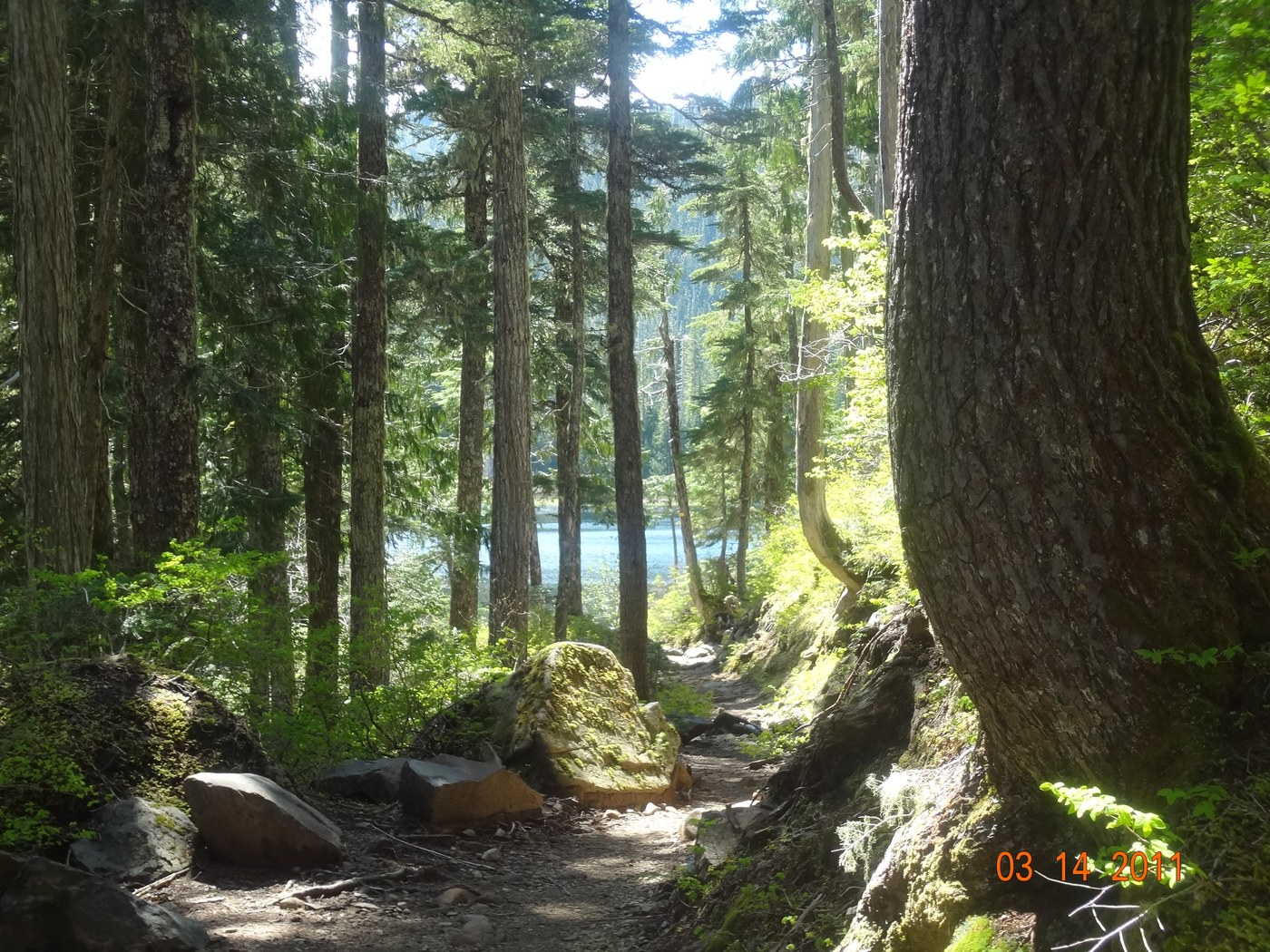 My son and I camped at the Sol Duc Campground and began our hike from the Sol Duc Falls parking lot at 9:00 am. We expected the crowds being Memorial Day Weekend. Sol Duc Falls trail was well maintained and not to difficult. The falls were beautiful but we had hiked to them Friday afternoon when we first arrived and it was not our destination today so we passed by the crowds and took the trail to the right that leads to the deer lake trail. In about 0.1 mile we saw the sign post to deer lake which said 3 miles to deer lake but it is actually slightly more than that. For me,an asthmatic, out of shape, 52 year old who is not as agile as I use to be, this was a difficult climb. The trail was rocky, sometimes narrow and sometimes more like a creek bed. It was steep at times (at least for me) but there wasn't any time that I needed to scramble or use my hands to get up. I found varying reports for the elevation gains but they are all between +1530 to +1760 feet. I think that it may depend on whether they are counting the elevation to the lake only or to the trailhead to the High Divide trail. Either way, it may not sound like much to veteran hikers but for me it was challenging. My son seemed to have no problems at all. The last 1.5 is fairly steep and seemed a lot longer that it was. It was a beautiful day with some mostly clear skies and sun shining. There was quite a few people on this trail Many who looked as if they would be going on to other destinations and camping out for the night. As much as I would love to see the view from the high divide or other lofty heights I felt I accomplished something by just getting to this peaceful little lake. With my frequent stops to rest we didn't reach the top until just before noon. A disappointing hour a mile pace. We ate our lunch and rested at the top for about an hour and then made our way back. There were still several groups making their way up the trail to the lake. I was watching my gps closely and it was about 1 mile to the last Canyon Creek Campsite and about another mile to the next one. The last campsite was actually more than a mile something like 1.3 or 1.4. We reached sol duc falls and there was an abundance of people. Looked like there was a bus load from a photography glass or something. The trail was crowded back to the parking lot. Passing groups of people nearly every few minutes. We reached the parking lot by 3:00 pm. (Somewhere along the way I hit a wrong button on my camera and some of my pictures have a random date stamp on them. For some reason it is set to 2011 which is obviously wrong)