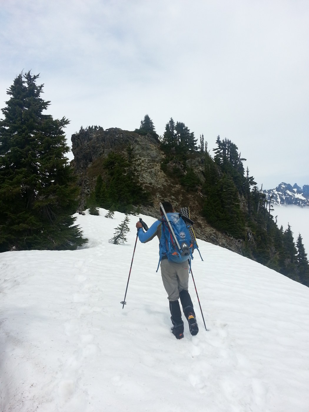 On this "no-snow" year, the ridge up to Alta Mountain is already mostly snow free. We had an ice axe and microspikes but did not use them.