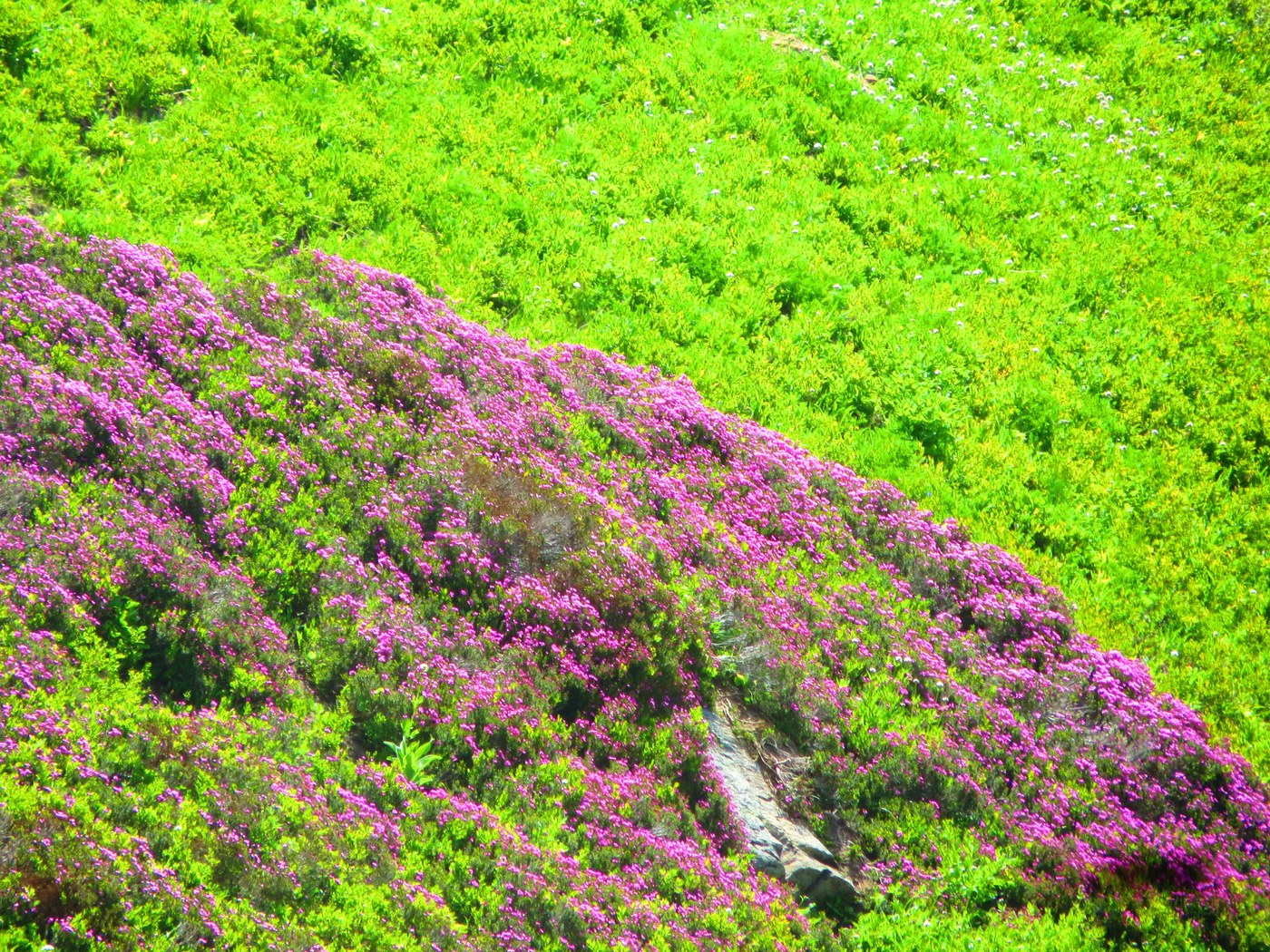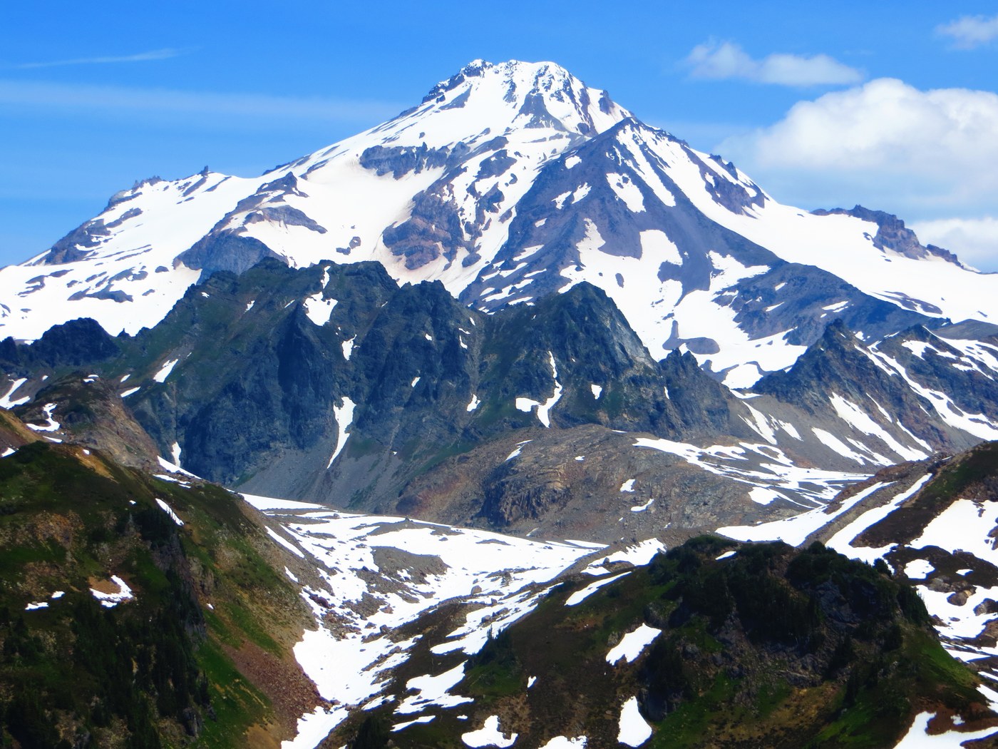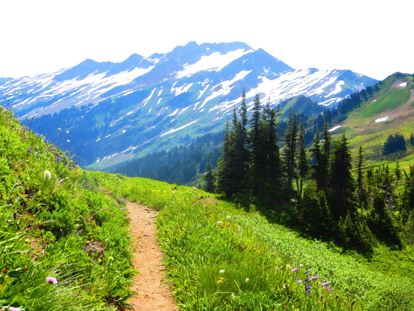 Overall the Sauk River Trail was in great shape, but devils club was encroaching on the trail in the sunny spots before Mackinaw Shelter. From Mackinaw Shelter to White Pass the trail was completely snow free with no issues. The wildflowers were in full bloom up in the meadows and the color was intense. There was a nice cool breeze and I think it kept the bugs away. The hike through the alpine meadows up here have always been one of my favorites, there seems something magical about it.