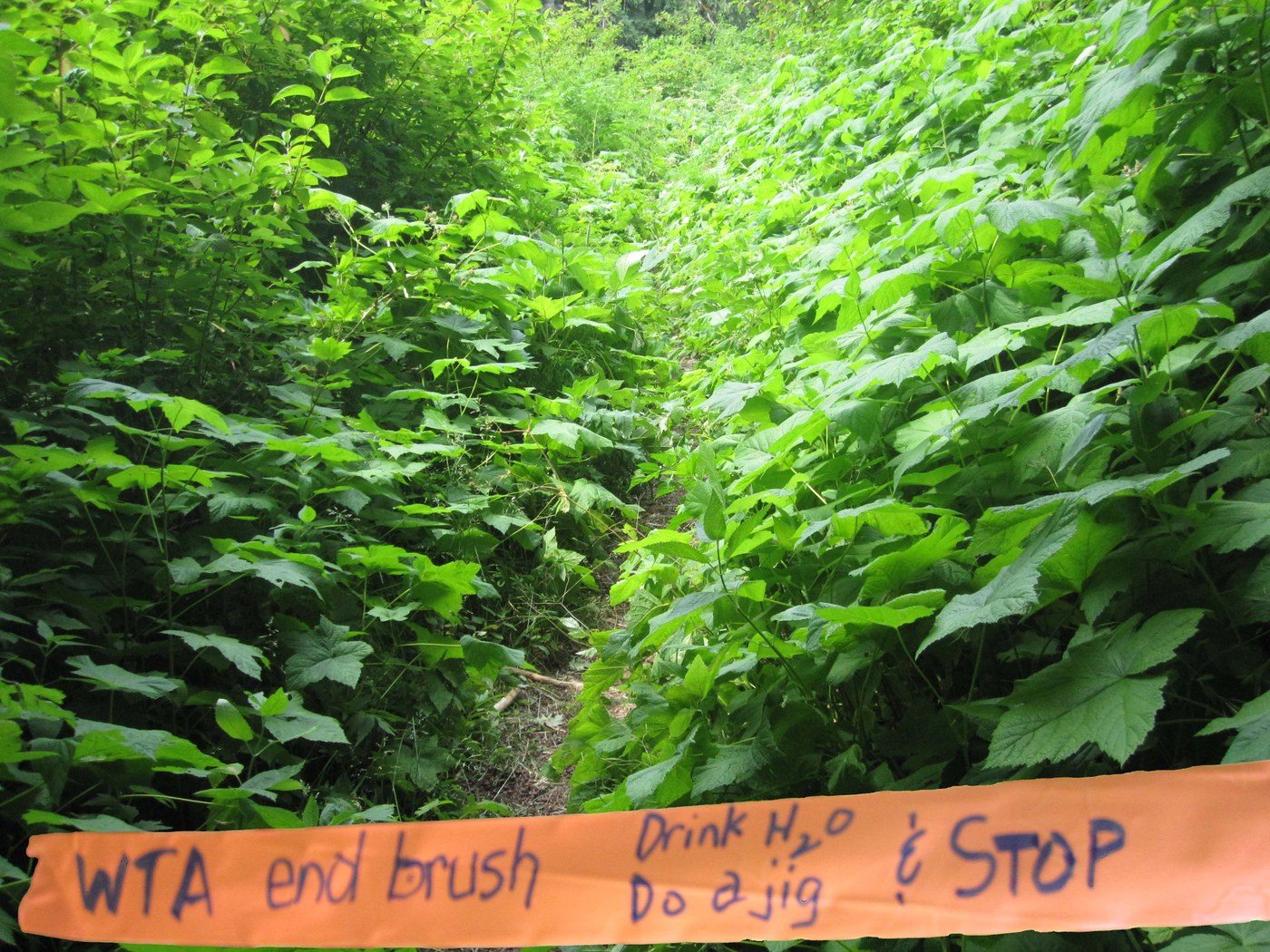 We climbed Glacier Peak by taking these two trails. The Sloan Creek road had a few spots where potholes crossed the entire width of the road, so just drive slow and easy. The North Fork Sauk trail was in great shape early on, but needs quite a bit of brushing after the junction with Pilot Ridge Trail at 1.9 miles. I see that a Youth Volunteer Vacation will be up there next week. They'll have plenty to keep them busy, and plenty to enjoy. See the photo of the orange tag that USFS left for WTA! Ha!