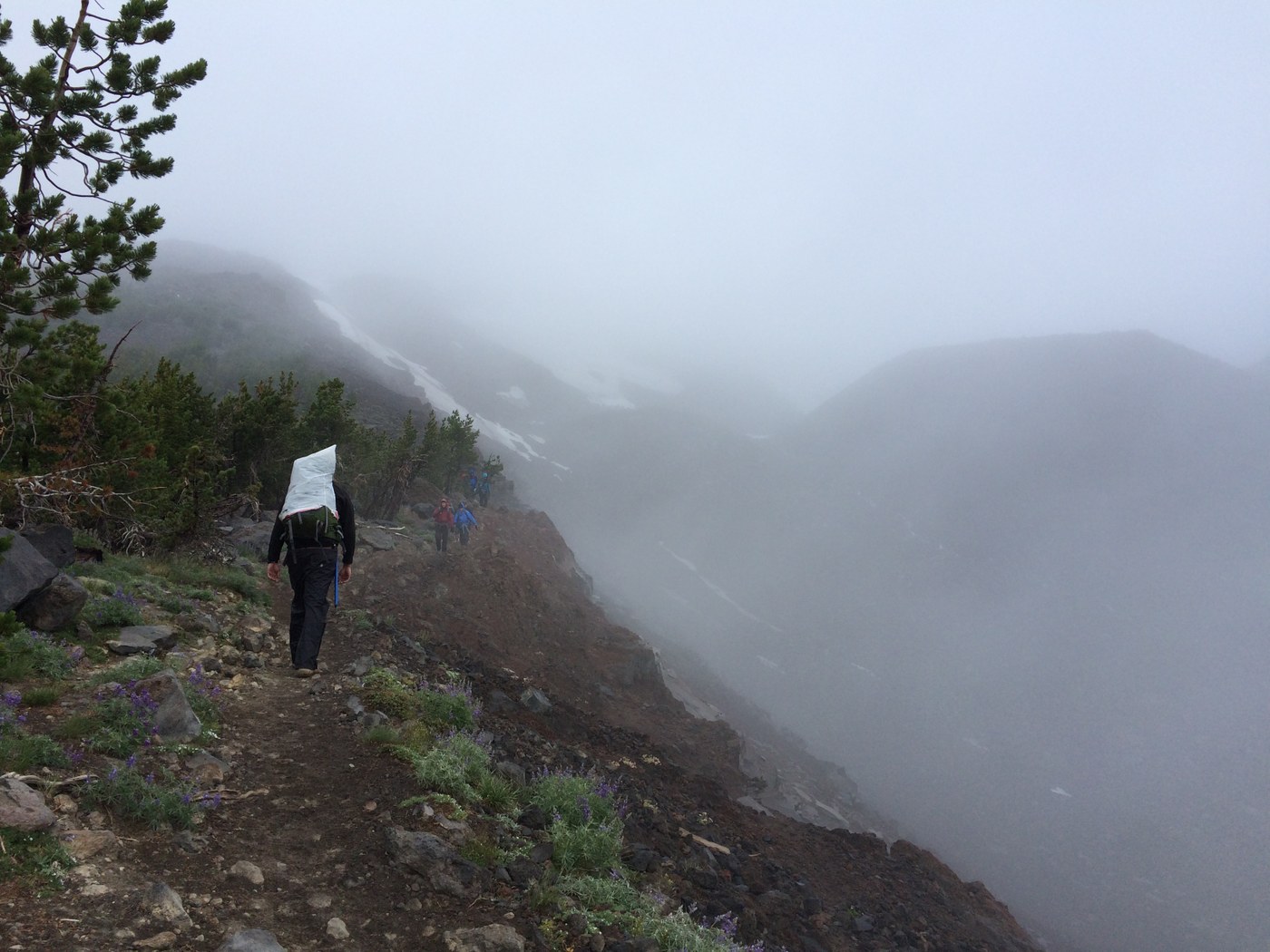 The hike up to the lunch counter was wet and windy most of the way, then we finally got a break in the weather about a mile from the counter and decided to push on. Made it to the counter early evening wet and windy and shivering (26 degrees). Only saw two other groups camp at the lunch counter Saturday night.