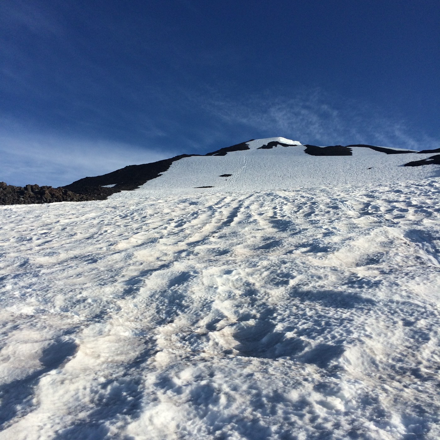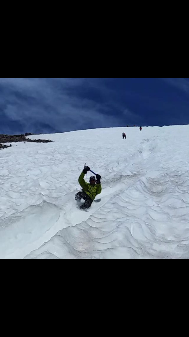 Sunday morning awoke to beautiful blue skies and NO WIND!!! The false summit requires some traction device crampons ( I used Hillsound trail crampons) and they work great. Made it to the summit in 3 hours from the lunch counter. I would guess 30+ people made the summit sunday. The glissade down the false summit is a must. only took less then a hour to get back to the lunch counter. Packed up the tent and gear and were back and the trailhead about 3:30.