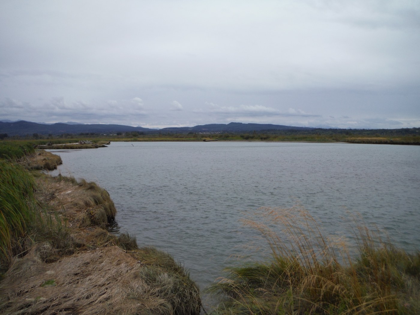 The trailhead is 5 minutes off of I-5. The dike trail is wide, easy to walk on. It narrows toward the tail end, as you reach the Skagit River. Great place to hike, whatever the weather. Yesterday had a nice wind, with rain to come in the air.