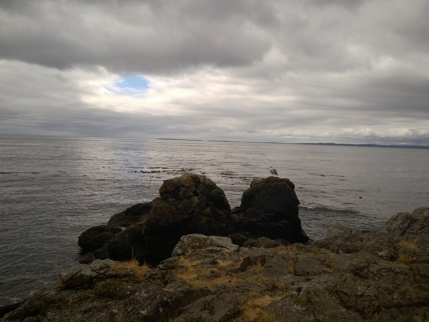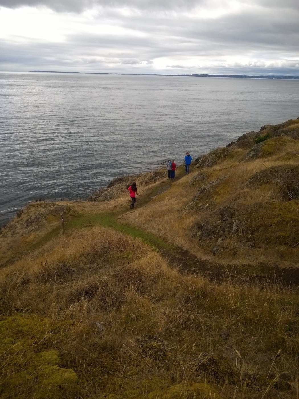 The park is surprisingly beautiful--big meadows interspersed with gorgeous evergreens and madrona trees, rocky bluffs, and pebbly beaches scattered with driftwood. There is an info center where you can purchase a day or annual Discover Pass with a credit card. I don't recall what its hours are, but if it's closed there is a self-service station where you can get a day pass for exact change (cash only, possibly checks, too).