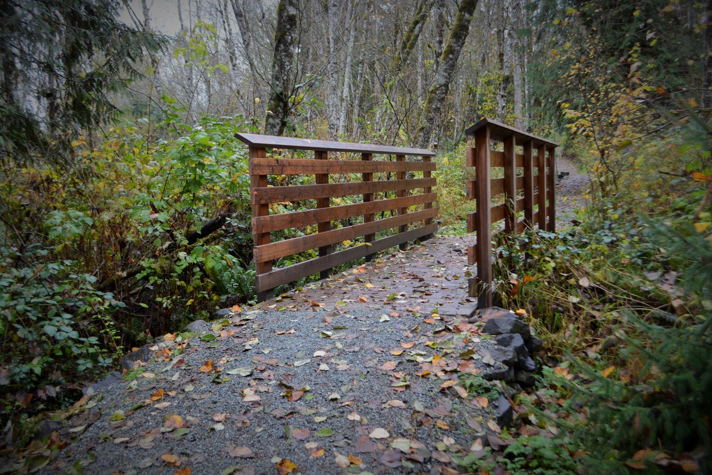 This was a nice trail, close to home, with lots of fall color. It has been raining a lot, so there is some mud, and lots of slippery leaves on the trails, but it's not really much of a problem. It stopped raining while I was hiking, but even with the dismal sky, the colors were pretty, and it as quiet.