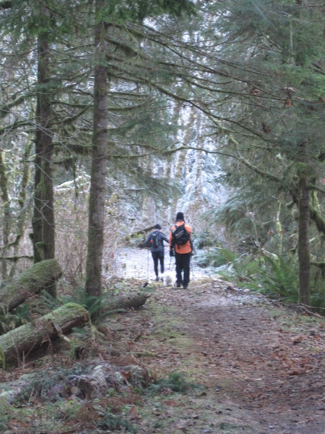 This was our first hike on this trail. It was a lovely day for November, 29° and all the mud was frozen. The bank the trail was supposed to be on disappeared in about 1/2 mile due to a slight river course change. The adventurous could climb down the bank and walk the riverbank as long as the water was low. We were with an elderly dog and chose to turn around. We understood that the trail has been washed out further along for years and never re-routed anyway.