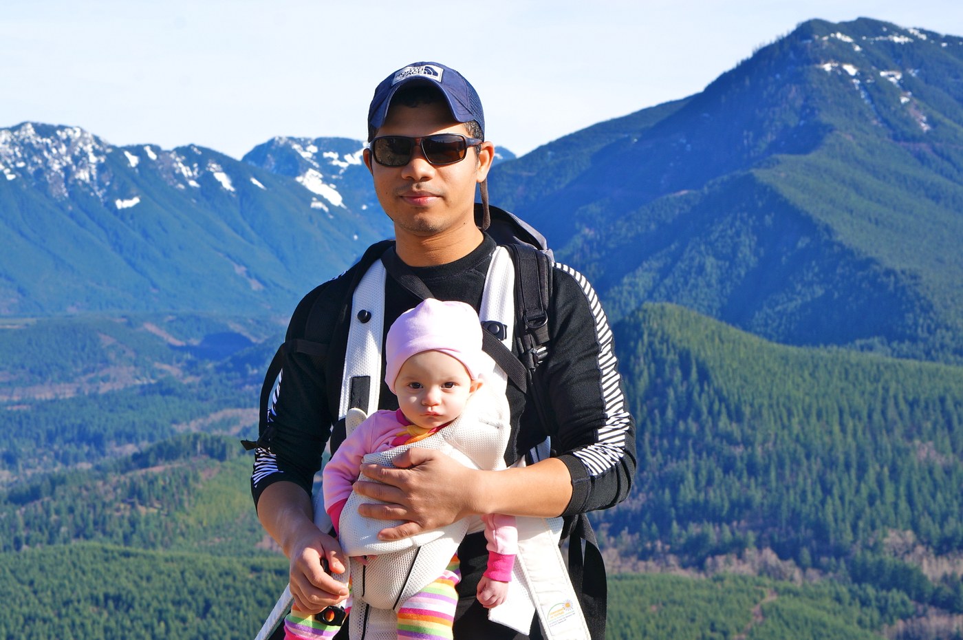 With such beautiful weather I had no choice but to take the day off. When you have young kids you have to find opportunities to balance your love of the outdoors with parenting. Opted to take my six month old baby up Rattlesnake Ledge. She is still too small to carry with my Osprey Pack, so decided to use our Baby Bjorn.