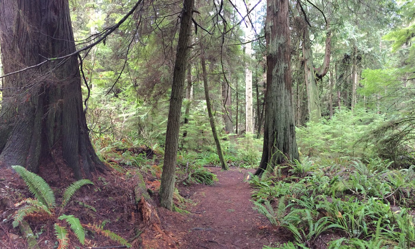Beautiful trails. Great addition to a day at Deception Pass or as a destination on its own. Big Douglas fir at the beach access parking lot. Started at the beach access trail and then headed back toward the ridge loop trail. I hiked the ridge loop trail, the fern gully, the ancient cedar and the wilber trail. You can do all of them in a little over an hour. The Fern Gully Trail is excellent and is lined with some big Sitka Spruce and the Wilbert Trail that cuts through the middle is heavy with big red cedars and several sizable douglas fir.