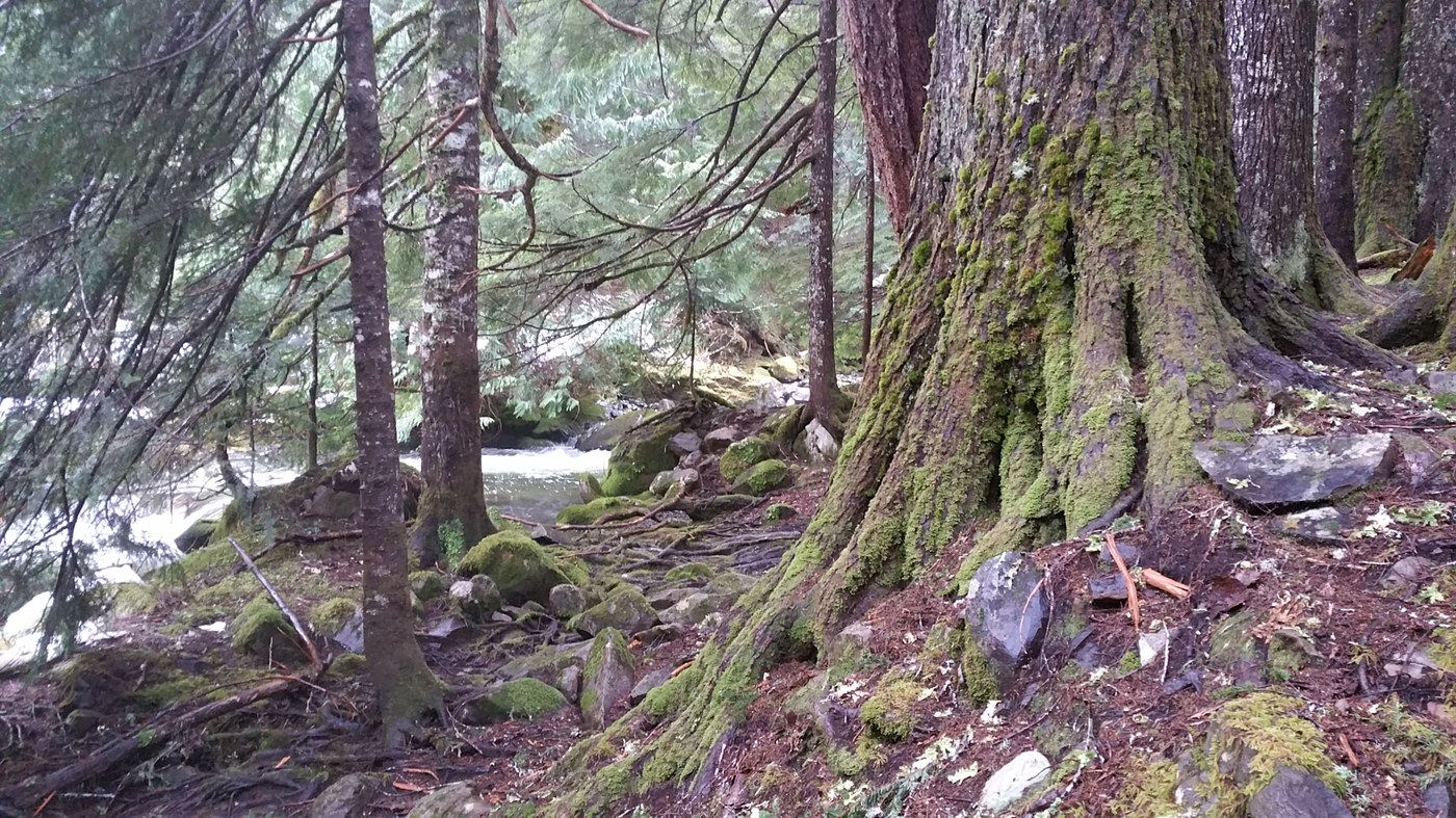 The weather is fairly warm below the first bridge over Canyon Creek but cools noticeably above this (~3300'). The campground is mostly clear of snow however all wood is thoroughly soaked and difficult to coax into warm fire. Another hiker told us there was much more snow cover above our site.