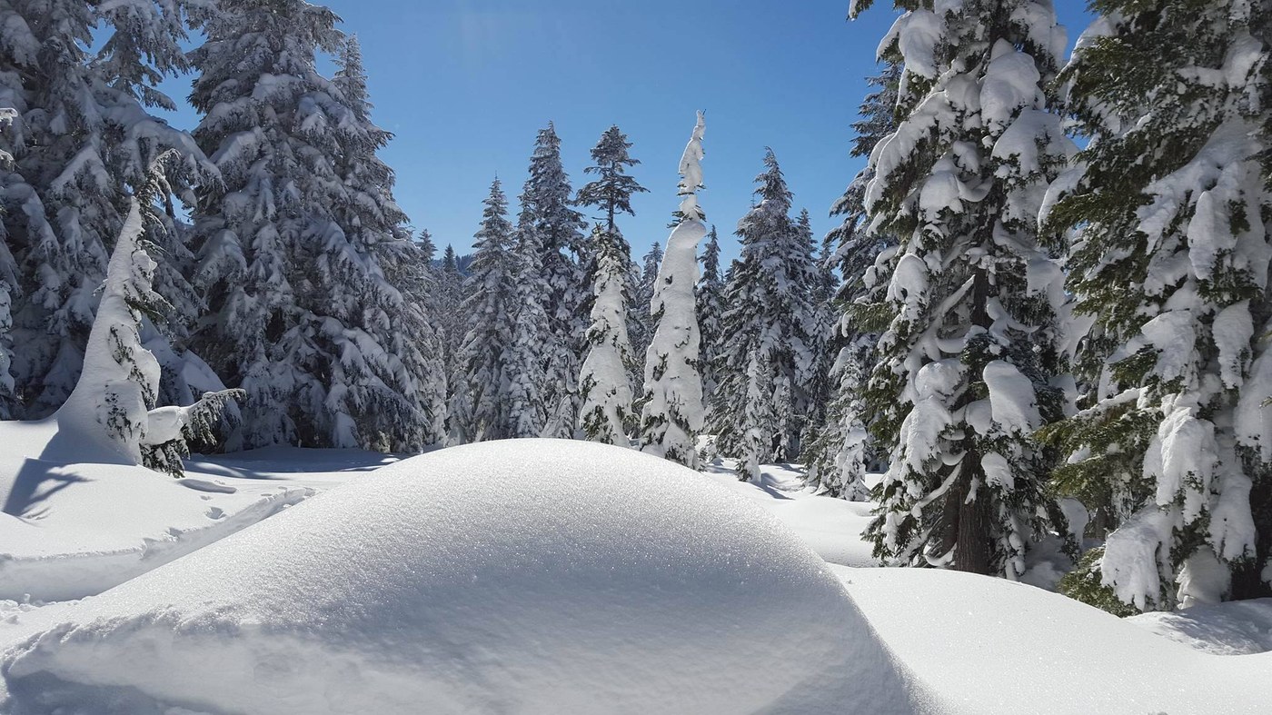 You could make it to the lake, EASILY, with nothing but solid hiking boots. The trail is easily accessible and packed down snow. My pup had a field day on this trail!