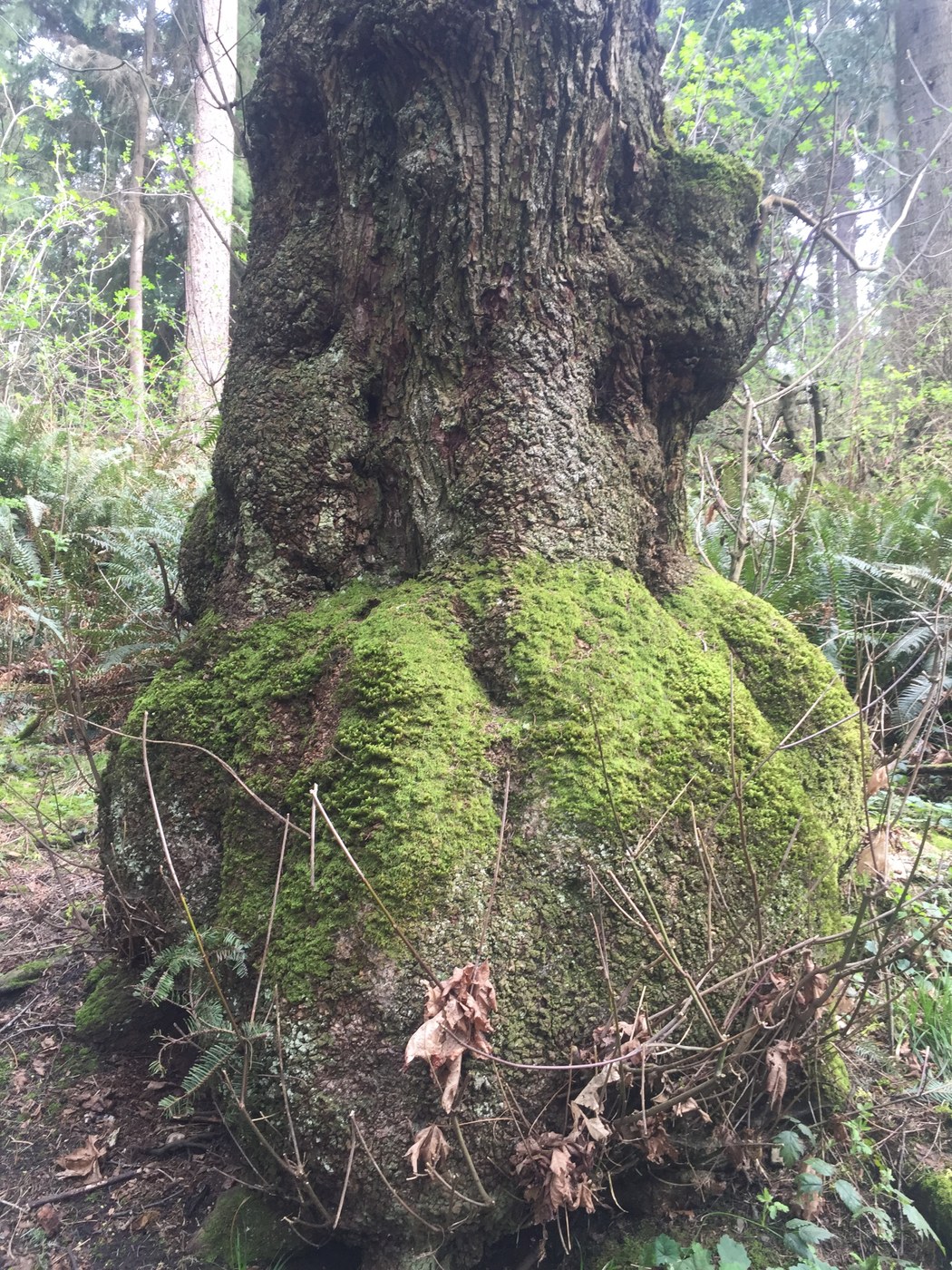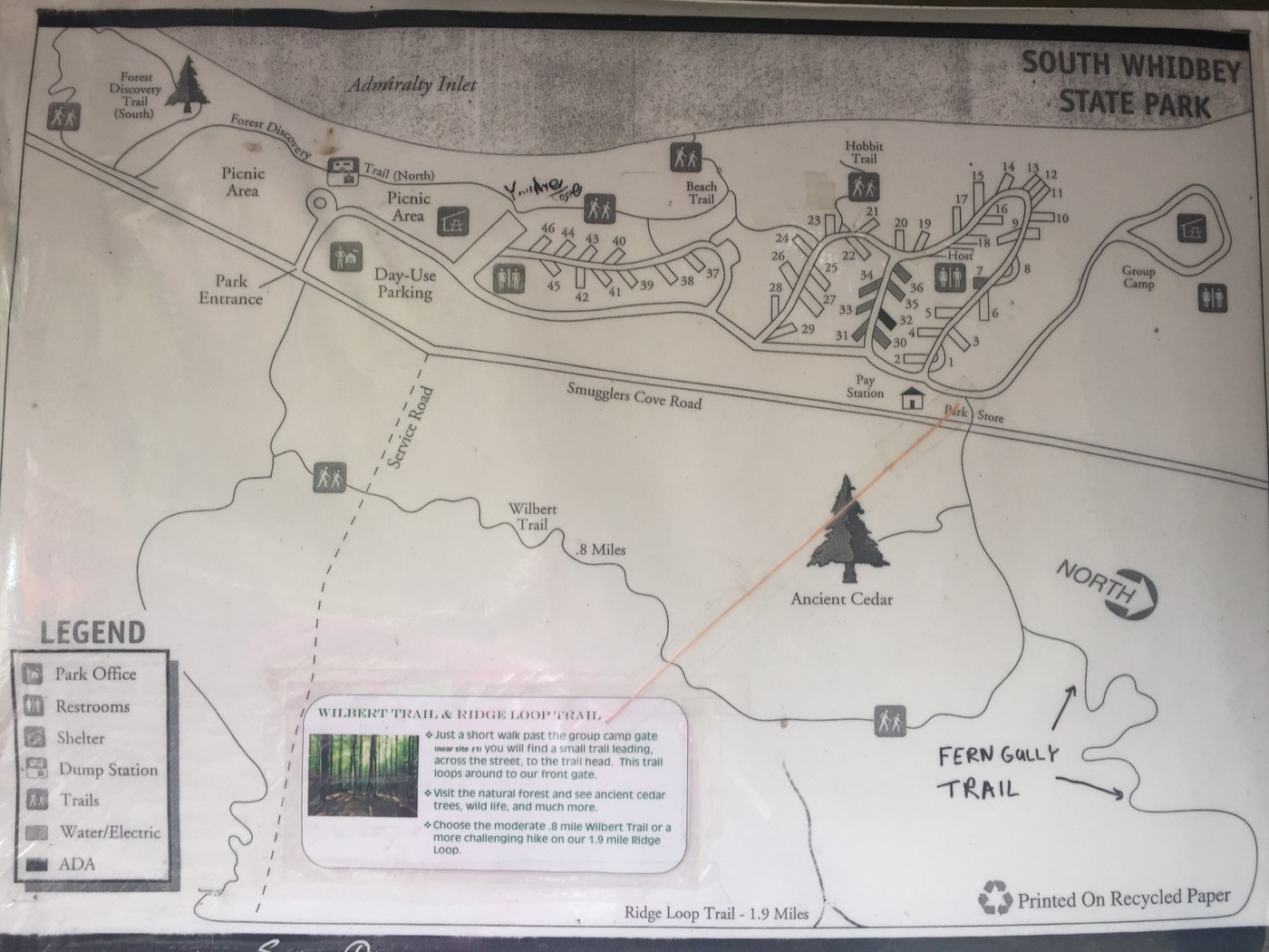 We are new to Washington and to hiking, but this trail sounded easy enough. I have a 4 year old and an 8 year old. We walked past the beach trail as I'd heard it was closed and knew it involved lots of steep steps. We proceeded to the Hobbit Trail, which had a marker of .2 miles. It's downhill all the way to a little bench overlooking the water. There were quite a few buzzy bugs flying around during our hike, which made me anxious, but no one suffered any bites. After completing the Hobbit Trail, we walked farther in to the campground area, which is closed for camping due to diseased trees. We saw lots of tree trunks covered in yellow, so I'm guessing those were the diseased ones. We also spotted several skunk cabbages during our walk.