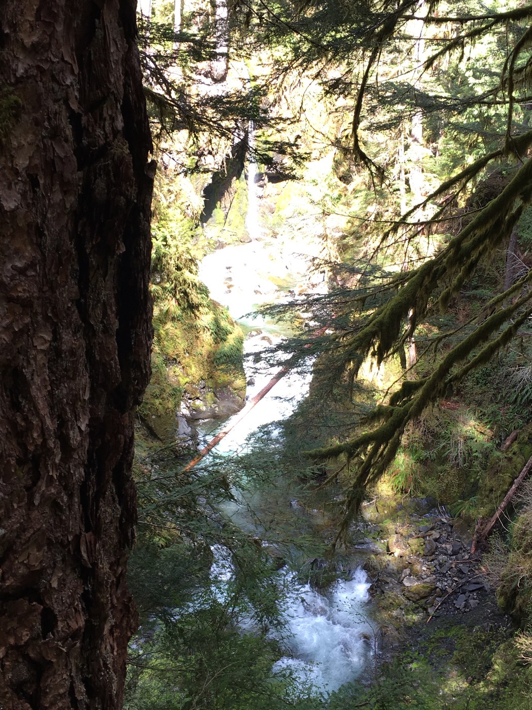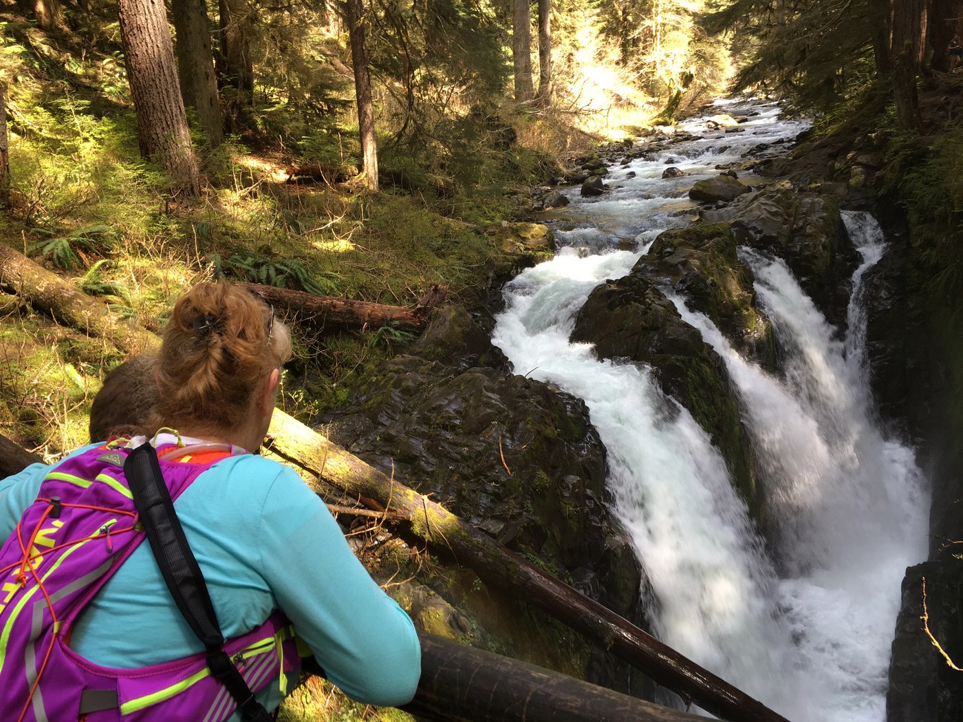 All in all the loop we took covered 7.1 miles. A but longer than the 6 I was expecting, but well worth it. We didn't want to lose any trail, so rather than parking in the falls parking area, we parked in campsite loop A. The trail toward The falls was well signed at the back of the loop. Everything on the hike was well signed. Trails were almost completely dry. There was several (ok, a lot) of downed trees/brush but all of it was easy to get around, or to see how others had gotten around. Flowers were blooming. it was a gorgeous day with Sun, and you could actually see the pollen floating in the air. (When we got back to our car several hours later, it was covered). There were lots of bugs and moths about, but no biting bugs. The falls were spectacular and had a close up view and a nice bench which made for a good lunch spot to watch the falls at. We headed back by way of lovers lane. I had anticipated the trail to cross the river before the resort, however I was wrong. It goes down at the far end of the resort, the you have to use the bridge into the resort to cross. But that is the only distance you have to walk on the road. Definitely a hike we are doing again!