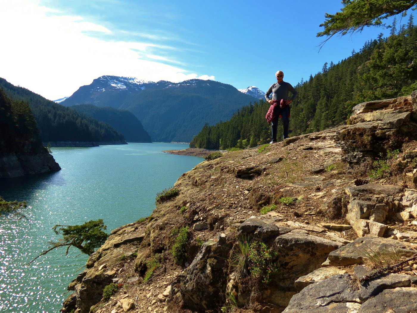 After dropping 200 ft from the parking lot located between mileposts 138 and 139 on Highway 20, it crosses Ruby Creek, where you come to a junction. Turning left the trail gains 900 feet in 6.8 RT to Hidden Hand, with its beautiful vistas of Ross Lake and Sourdough Mountain. It was our turn around point but the trail does continue on to Desolation Peak. The trail was mostly duff with some blow downs. We saw no others.